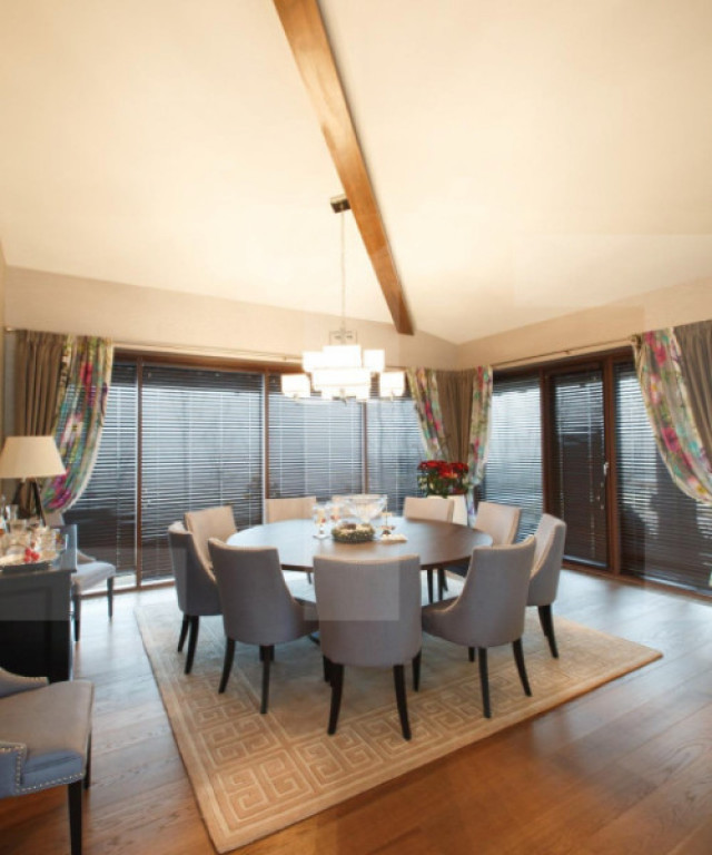 Blitz va ofera spre achiziție o reședință exclusivistă amplasată într-un cadru rezidențial nou din comuna Aiton, o zonă apreciată pentru liniște și accesibilitate. Proprietatea beneficiază de conexiuni rapide către Cluj-Napoca (aproximativ 20 minute), nodul de autostradă din Tureni și, implicit, către Aeroportul Internațional Avram Iancu Cluj, aflat la circa 10–15 minute distanță. Această vilă individuală se remarcă prin designul arhitectural modern, suprafețele generoase și nivelul ridicat al finisajelor, fiind concepută pentru un stil de viață confortabil, elegant și eficient. Compartimentare inteligentă – Spațiu și armonie Parterul – zona de zi și dormitoarele Interiorul este dominat de o zonă open-space amplă, scăldată în lumină naturală datorită vitrajelor extinse. Atmosfera este una sofisticată, dar primitoare. • Living spațios, ideal pentru relaxare și socializare; • Bucătărie complet echipată cu electrocasnice premium Miele; • Zonă de dining potrivită pentru mese în familie sau întâlniri cu până la 10 invitați; • Spații auxiliare bine organizate: cămară și dressing; • Dormitor pentru oaspeți cu baie proprie; • Birou dedicat activităților profesionale desfășurate de acasă; • Baie de serviciu; • Două dormitoare pentru copii, fiecare cu baie proprie; • Suită matrimonială impresionantă, cu dressing generos și baie privată amenajată la standarde premium. Subsolul – zonă multifuncțională Nivelul inferior este gândit pentru relaxare și utilitate: • Cameră de hobby cu masă de biliard și sistem performant de ventilație; • Două încăperi mari pentru depozitare; • Spălătorie și cameră tehnică; • Sală de fitness; • Zonă wellness cu saună și perete decorativ din sare naturală. Dotări și tehnologie de ultimă generație Imobilul se predă complet mobilat și utilat, integrând branduri de renume precum Miele, Bang & Olufsen și Villeroy & Boch. Confortul este susținut de: • Sistem smart home pentru control integrat; • Jaluzele electrice automatizate prin stație meteo; • Sistem de alarmă și supraveghere video; • Încălzire prin centrală pe gaz și ventiloconvectoare; • Panouri fotovoltaice cu putere instalată de 25 kW, pentru eficiență energetică sporită Exterior – Relaxare la tine acasă Curtea amenajată este un veritabil spațiu de recreere, având ca element principal o piscină exterioară încălzită, cu o suprafață impresionantă de 185 mp . Proprietatea mai include: • Garaj pentru două autoturisme; • Terasă acoperită; • Zonă de joacă pentru copii; • Foișor echipat pentru barbecue și bar. această vilă reprezintă o alegere ideală pentru cei care își doresc intimitate, confort și acces rapid către oraș, fără a renunța la liniștea unei comunități selecte. Vă invităm să descoperiți această proprietate printr-o vizionare ! Cod ofertă / ID BLITZ: P165356 Id intern: P165356
