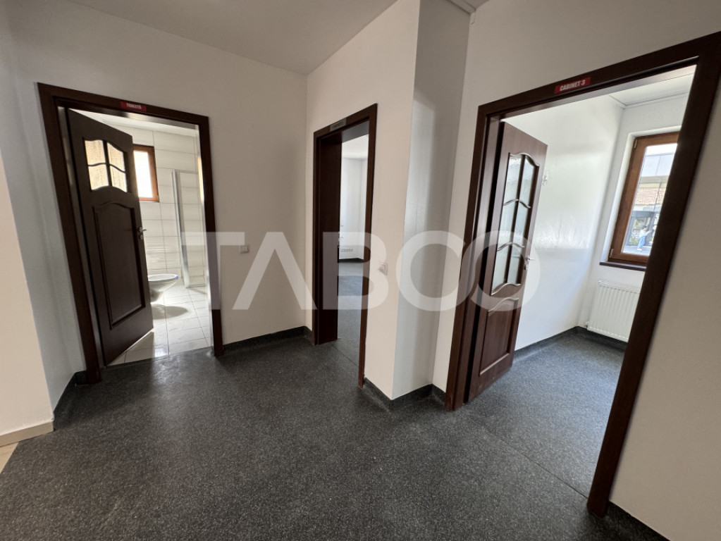 Casa individuala cu 7 camere de inchiriat, 220 mp, zona Central, Sibiu. Avantaje majore ale acestei case: • Schimbare de destinatie facuta; • Zona centrala, foarte aproape de Spitalul Judetean; • Acces auto pentru clienti, cu mai multe locuri de parcare; • Instalatii special facute pentru cabinete medicale; • Renovata recent; TABOO Imobiliare propune o casa de inchiriat cu 7 camere, situata in localitatea Sibiu, zona Central, cu regim de inaltime pe Parter + 1 Etaje; anul constructiei 2018, structura caramida. Suprafata utila de 220 mp + terasa de 6 mp si teren de 380 mp. Casa este structurata astfel: • Demisol: camera tehnica, vestiar; • Parter: trei cabinete, sala de asteptare, sala sterilizare, hol si casa scarii; • Etaj: aici avem un apartament compus din doua dormitoare, living, doua bai si o bucatarie. Finisajele interioare sunt moderne: • Usa intrare: pvc, termopan; • Usi interioare: lemn; • Tamplarie ferestre: pvc, termopan; • Pereti: vopsea lavabila, faianta; • Podele: parchet, gresie. Utilitati si dotari: • Mobilat: semimobilat; • Utilitati: curent electric, apa, canalizare, gaz, catv, acces internet; • Izolatii: exterior, bloc izolat termic; • Contorizare: apometre, contor gaz, contor curent electric; • Caracteristici casa/vila: interfon, acoperis, curte, receptie, sistem de alarma, telecomanda poarta acces auto. Casa se inchiriaza semimobilat si semiutilat. Incalzirea se realizeaza prin centrala proprie, calorifere. Pret: 1.800€ Cod ofertă / ID: P23613 Sună-ne acum la 0369.822.820 și află detalii despre această proprietate de inchiriat din Sibiu, dar și despre alte proprietăți potrivite pentru tine. Informatii speciale: 1. Descarcă aplicația pe mobilul tau "TABOO Imobiliare" din Apple Store, Google Play sau Huawei AppGallery pentru a afla instantaneu noile proprietăți care intră pe piață. 2. Dacă ai o proprietate pe care vrei să o vinzi sau să o închiriezi, suntem aici pentru tine! Contactează-ne pentru o evaluare gratuită fără obligații și vei descoperi avantajele de a lucra cu o echipă dedicată și experimentată. 3. Dacă vrei sa incepi o cariera de agent imobiliar, suna la 0369.822.820 si programeaza o intalnire pentru a afla toate beneficiile si avantajele. Intră pe TABOO.ro și descoperă cele mai recente oferte, actualizate zilnic. Anunt actualizat in 5 decembrie 2025. Id intern: P23613