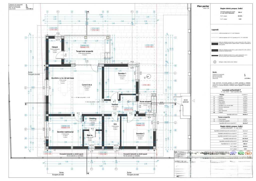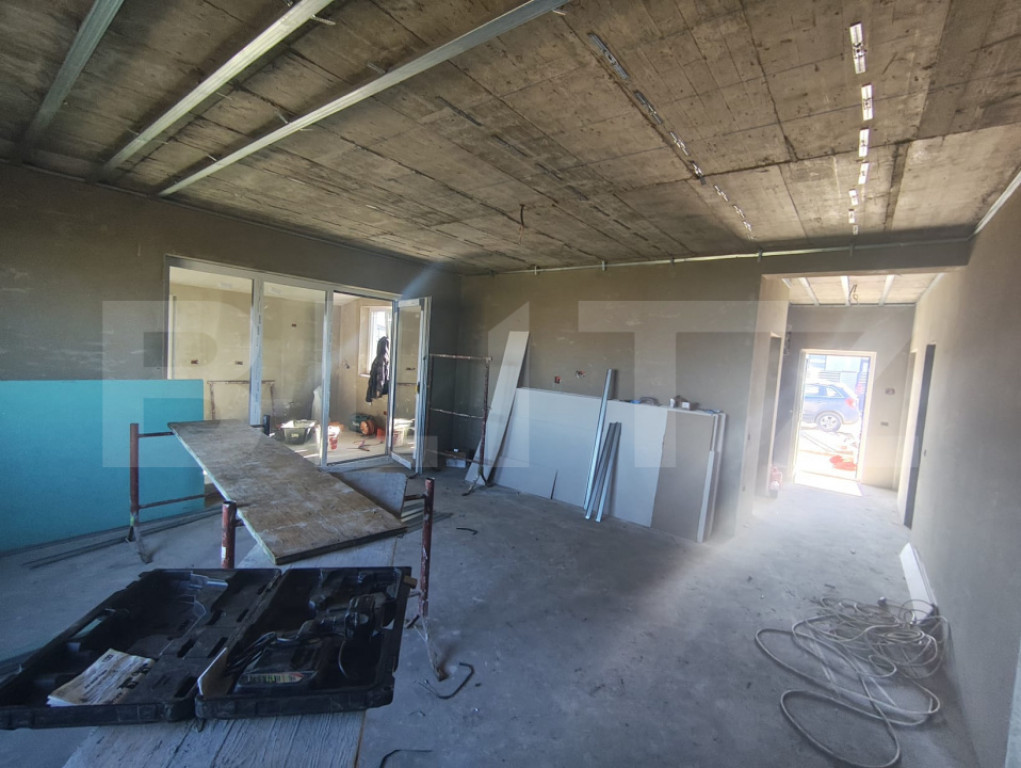 Va propunem spre vizionare o proprietate situata in Santandrei, intr-o zona usor accesibila, amplasata pe o suprafata de 500 mp. Proprietatea se poate preda la stadiu semifinisat, sau finisat la cheie, conectat la toate utilitatile apa, gaz, curent, canalizare. Caracteristici: hol de acces, 2 dormitoare, baie de serviciu, dormitor matrimonial cu baie si dressing propriu, camera de zi spatioasa, terasa acoperita si camera tehnica, casa beneficiaza de placa din beton, izolata cu spuma, exterior izolat cu polistiren de 10 cm EPS 100, tencuiala decorativa, trotuare perimetrale, jgheaburi de scurgere apa pluviala, 3 laturi gard imprejmuire, din placi de beton. Pretul afisat este la stadiul de finisat la cheie. Pentru vizionari, contactati Blitz Imobiliare. Cod ofertă / ID BLITZ: P165504 Id intern: P165504