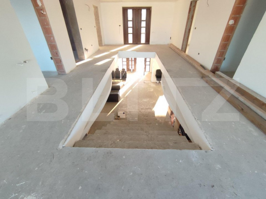 Blitz va ofera o casă cu etaj, situată la doar 5 minute de centrul orașului, care este o oportunitate unică pentru cei care caută un loc deosebit, gata să devină un camin personalizat. Cu un design spațios și o locație convenabilă, această proprietate poate deveni baza perfectă pentru un stil de viață urban. La intrarea în casă, veți fi întâmpinați de un living generos și luminos, oferind un spațiu perfect pentru relaxare și socializare. Designul său deschis încurajează interacțiunea familială și conferă casei un aer prietenos. Bucătăria modernă oferă un fundal perfect pentru a vă pune în practică talentul culinar. Spațiul este generos și permite personalizarea în funcție de preferințe. Parterul găzduiește două camere versatile - un dormitor spațios și o cameră de birou, permitând flexibilitate în utilizarea spațiului. Baia la parter, cu gresie si faianta va ofera libertatea de a alege finisajele potrivite și de a adăuga propria notă personală. Accesul facil la un spațiu tehnic eficient este esențial pentru întreținerea facilă a casei. La etaj, patru dormitoare oferă spațiu privat pentru membrii familiei. Fiecare cameră vă oferă șansa de a le amenaja după propriul gust. Un al doilea living la etaj este ideal pentru momentele de intimitate sau petreceri mai mici, adăugând un nivel suplimentar de flexibilitate spațiului. Baia de la etaj, cu gresie, faianță și cadă poate fi personalizată pentru a satisface nevoile și preferințele locuitorilor. Cele două terase mari, una la parter și una la etaj, oferă locuri perfecte pentru a vă bucura de aerul proaspăt și a contempla peisajul înconjurător. În curte, un foisor cu bucătărie adaugă un spațiu suplimentar pentru activități sociale și petreceri în aer liber. Două garaje spațioase asigură locuri de parcare sigure pentru vehicule, iar magazia oferă spațiu suplimentar pentru depozitare. Casa este echipată cu toate utilitățile necesare, încălzire prin pardoseală, asigurând confortul și funcționalitatea. Totuși, fiind în stadiu semifinisat, aveți libertatea de a adăuga elementele dorite. Această proprietate reprezintă o casă ideală pentru cei care doresc să își pună amprenta personală asupra spațiului de locuit și să creeze o casă pe măsura visurilor lor. Este o oportunitate rară de a avea o locuință la doar câteva minute de centrul orașului, cu posibilitatea de a adăuga propria notă de eleganță și confort. Va invitam la vizionare! Cod ofertă / ID BLITZ: P101005 Id intern: P101005