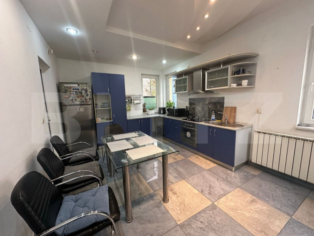 BLITZ va invita sa vizionati o casa cu potential rezidential sau comercial, pretabil clinica sau after-school, ea are urmatoarele specificatii: Demisol: 1 camera, 1 camera tehnica Parter: 1 living, 1 bucatarie, 1 iesire spre terasa din curtea din spate unde avem acces la piscina si loc de joaca, 1 camera, 1 baie cu dus La etaj: 1 loja superba, 2 camere, 1 baie cu cada, 1 balcon si 1 balcon tip terasa Pod cu posibitate de a mai face o camera cu acces la alta terasa. EXTRA: curent trifazic, piscina exterioara din beton hidrotehnic, izolata exterior, se vinde mobilata. Va invitam la vizionare! Cod ofertă / ID BLITZ: P137243 Id intern: P137243
