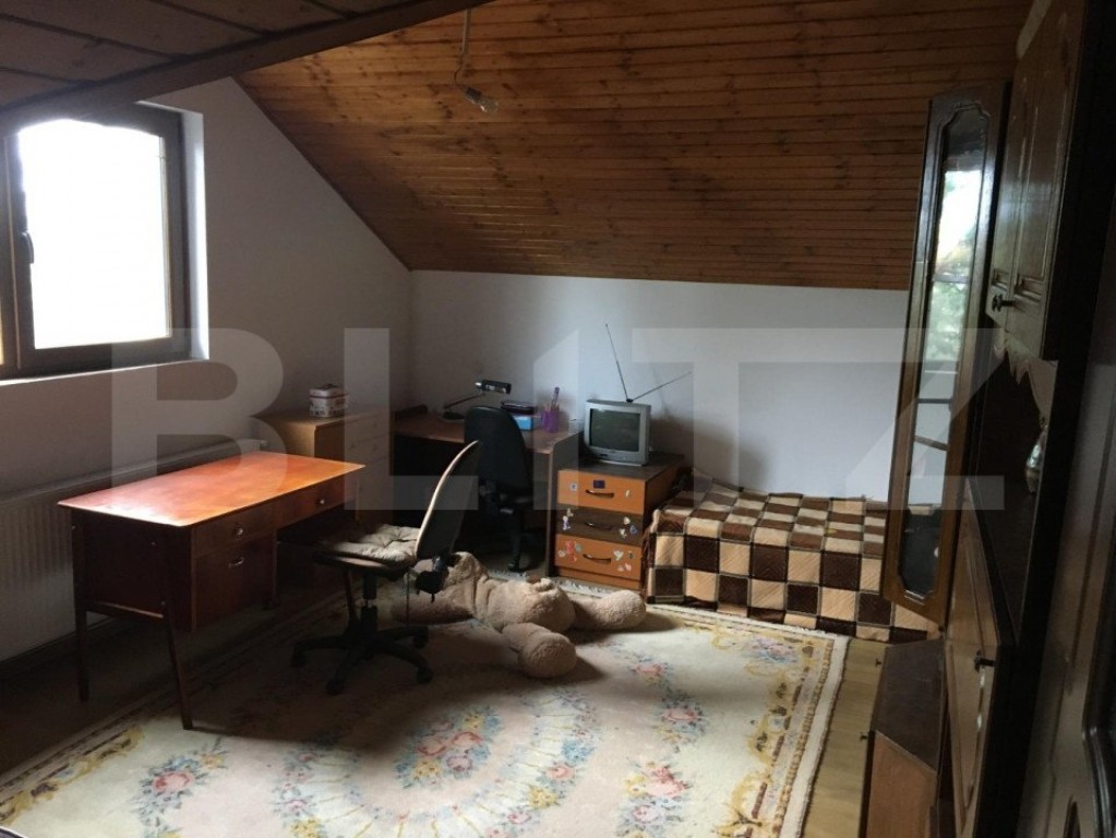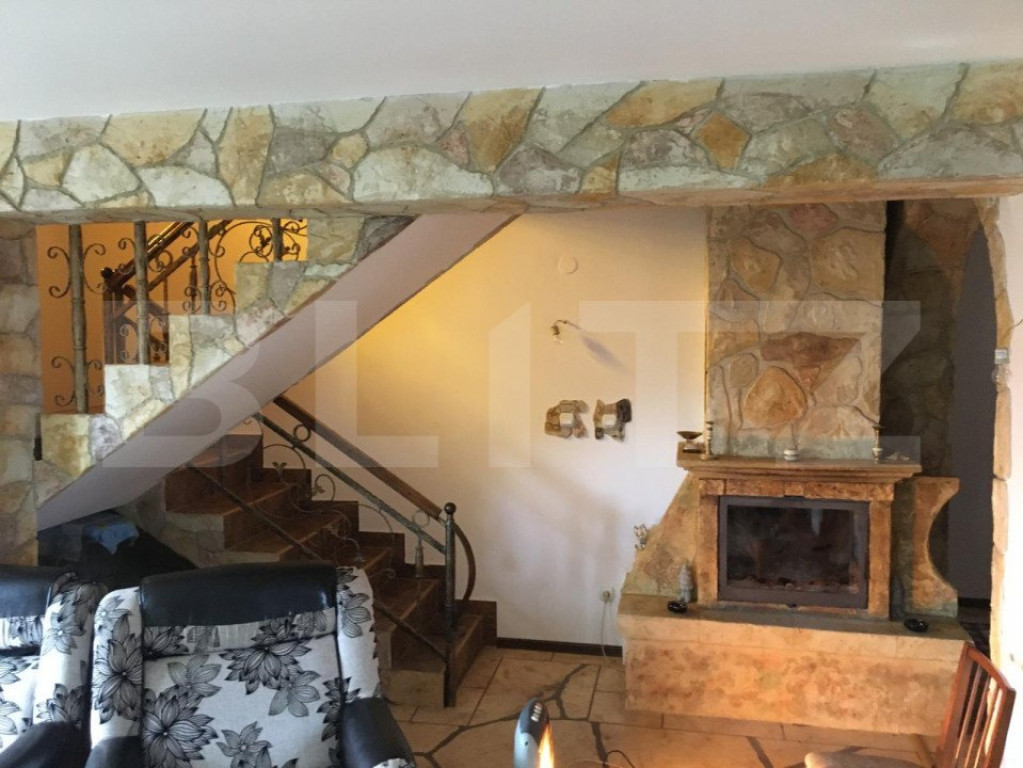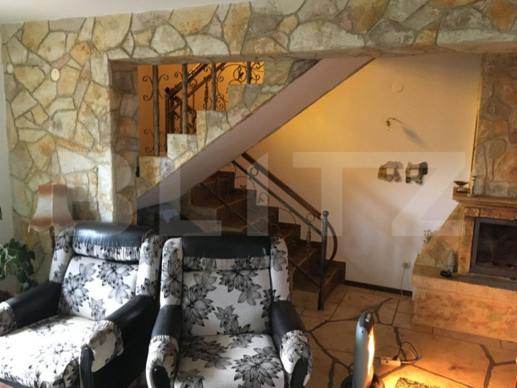 Blitz Imobiliare Târgoviste vă prezintă o proprietate specială de vânzare si anume o Vilă/Conac situată într-o locație plină de verdeață si liniște in Targoviște. Casa se află la 8 minute de Centrul orașului. Terenul cu vegetație matură si suprafață de 1100 mp deține 2 construcții: casa principală cu suprafața utilă de 200 mp si o casă de oaspeți cu suprafața de 74 mp. Conacul dispune de cele mai moderne și eficiente instalații: încălzire in pardoseală tip Schluter, șemineu monumental în living cu distribuție a căldurii la parter si etaj. La parter exista un living generos de 33 mp, o bucatarie de 20 mp, un dormitor, care poate fi folosit ca si birou, o cămara, baie si un dressing de 14 mp. Etajul are trei dormitoare, fiecare de 26 mp, plus baie si dressing proprii, dar si o terasă de 12 mp cu o priveliște cu verede in natură. La parter există un salon generos cu bucătarie completă și baie, plus camera tehnică. Încalzirea este incorporată in pardoseală și se face cu ajutorul unei centrale termice pe lemne. Designul mobilierului de aici este rustic. Mansarda are dublă izolație, exterioară cu polistiren de 10 cm, interioară cu folie Isoflect. Construcția clădirii e din BCA, Tâmplaria de Pvc , țigla e model “solzi”. Stilul in care se încadrează conacul e rustic elegant. Conacul are propria stație de epurare formata din trei fose septice ecologice, precum și o fântâna proprie de 14 m adâncime. In localitate exista apă curentă. Curtea e împărțită in patru parți: o zonă însorită, una de umbră, cu arbori ornamentali maturi, și una a pomilor fructiferi - meri, peri, gutui, cireși, vișini, viță de vie. Casa de oaspeți este o constructie noua, are 74 mp, două garaje si o cameră tehnică, dedesubtul magaziei este construit un beci tip cramă, la parter si o terasă generoasă cu grătar la etaj si un salon primitor. Mai există câteva zone de depozitare interioare și exterioare; Ansamblul se vinde semi-mobilat. Cod ofertă / ID BLITZ: P12033 Id intern: P12033