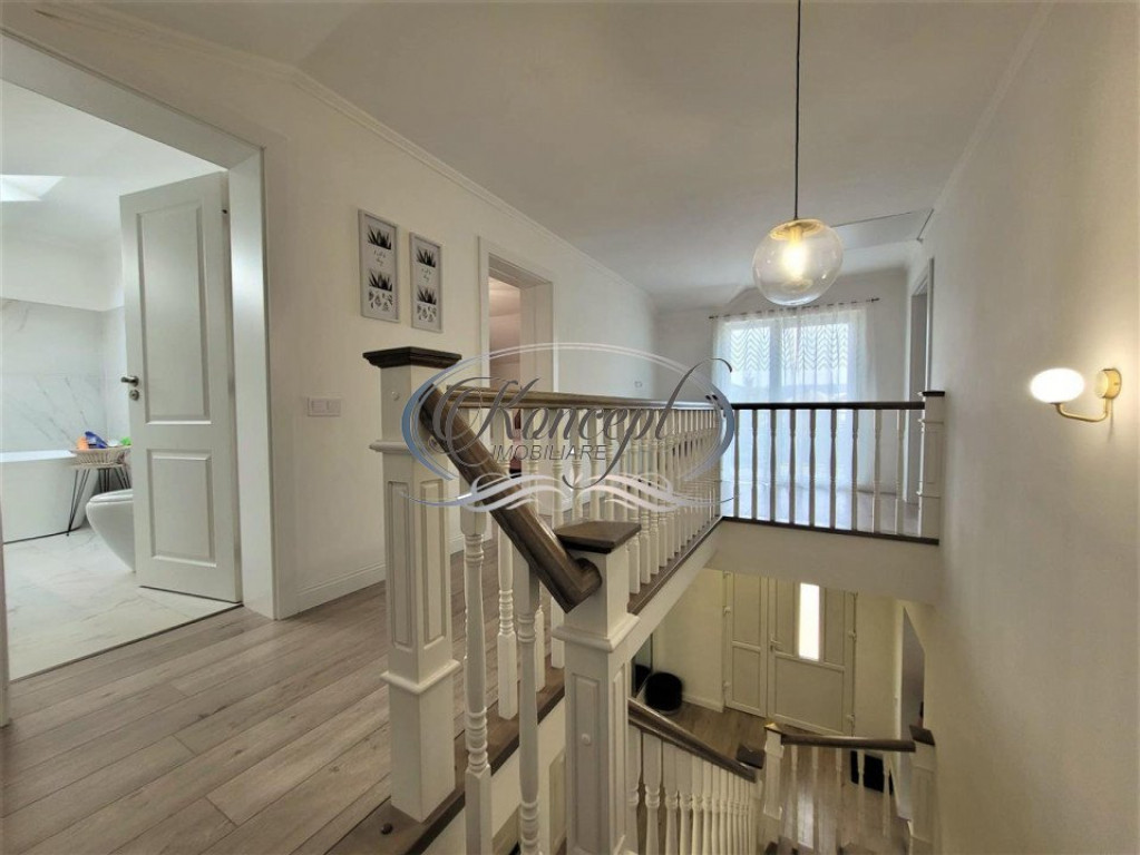 Koncept Imobiliare va ofera spre vanzare o casa individuala ultrafinisata in cartierul Terra Floresti - primul cartier rezidential cu acces controlat de acest fel, care beneficiaza de linistea si organizarea unui ansamblu privat, precum si de siguranta copiilor care au parte de strazi asfaltate si de parc de joaca si relaxare. Stilul de viata oferit in cartier este incomparabil cu ceea ce se poate gasi in orice alta locatie din zona Clujului. Utilitatile si functionarea lor la parametri corecti, accesul facil, iluminatul public, solutiile tehnice de ultima generatie fac din cartierul Terra Floresti o locatie de ravnit pentru cei ce doresc un stil de viata confortabil. Casa individuala, in suprafata utila de 191 mp, este amplasata pe un teren de 531 mp. Aceasta a fost construita in 2007 si complet renovata in 2021 si este compartimentata dupa cum urmeaza: la parter o bucatarie generoasa, living cu iesire pe terasa, baie, camera tehnica si accesul in garaj, iar la etaj: 2 dormitoare matrimoniale cu baie si dressing propriu, inca un dormitor si inca o baie. Casa se vinde complet mobilata si utilata modern, cu materiale si electrocasnice de foarte buna calitate. Putem aminti semineul functional, cu boiler pentru recuperarea caldurii, masina de spalat vase, masina de spalat rufe, combina frigorifica, plita si cuptor incorporabil, scara interioară din lemn masiv, mobilier din MDF, etc. Actele au fost verificate si validate de catre agentie! Pentru detalii suplimentare, programarea unei vizionari sau pentru a va prezenta oferta noastra completa, nu ezitati sa ne contactati telefonic, prin email sau direct la sediul agentiei noastre pe pe str. Aviator Badescu nr. 19, Cluj-Napoca. Id intern: P14702