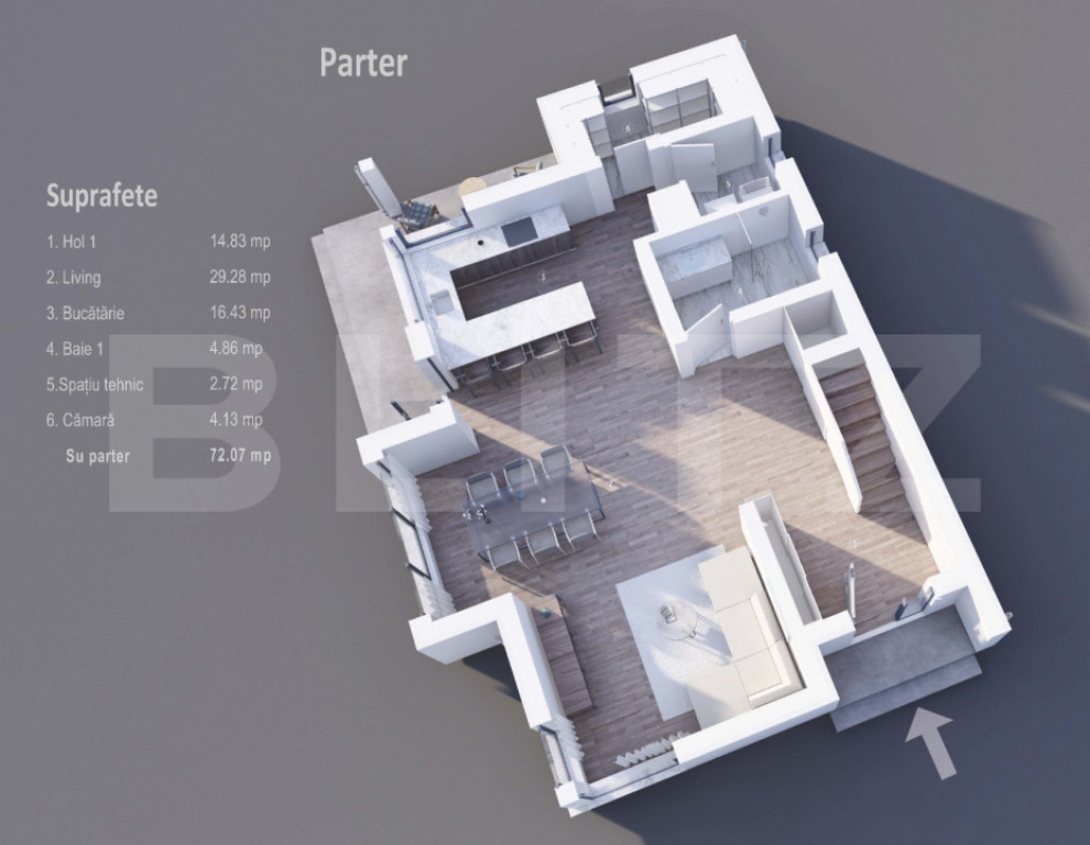 Blitz oferă spre vânzare casă individuală, amplasată pe un teren generos de 400 mp, cu o suprafață utilă de 138 mp, compartimentată eficient pentru confortul unei familii. Imobilul este dispus pe parter + etaj și este compartimentat astfel: Parter: living spațios și luminos bucătărie baie cămară spațiu tehnic Etaj: 3 dormitoare dormitor matrimonial cu baie proprie, dressing și ieșire pe terasă încă o baie pentru celelalte dormitoare Casa oferă un spațiu bine organizat, luminos și funcțional, ideal pentru o familie care își dorește confort, intimitate și curte proprie. Terenul de 400 mp oferă suficient spațiu pentru amenajarea unei grădini, zone de relaxare sau locuri de parcare. Pentru mai multe detalii sau programarea unei vizionări, nu ezitați să ne contactați. Cod ofertă / ID BLITZ: P166255 Id intern: P166255