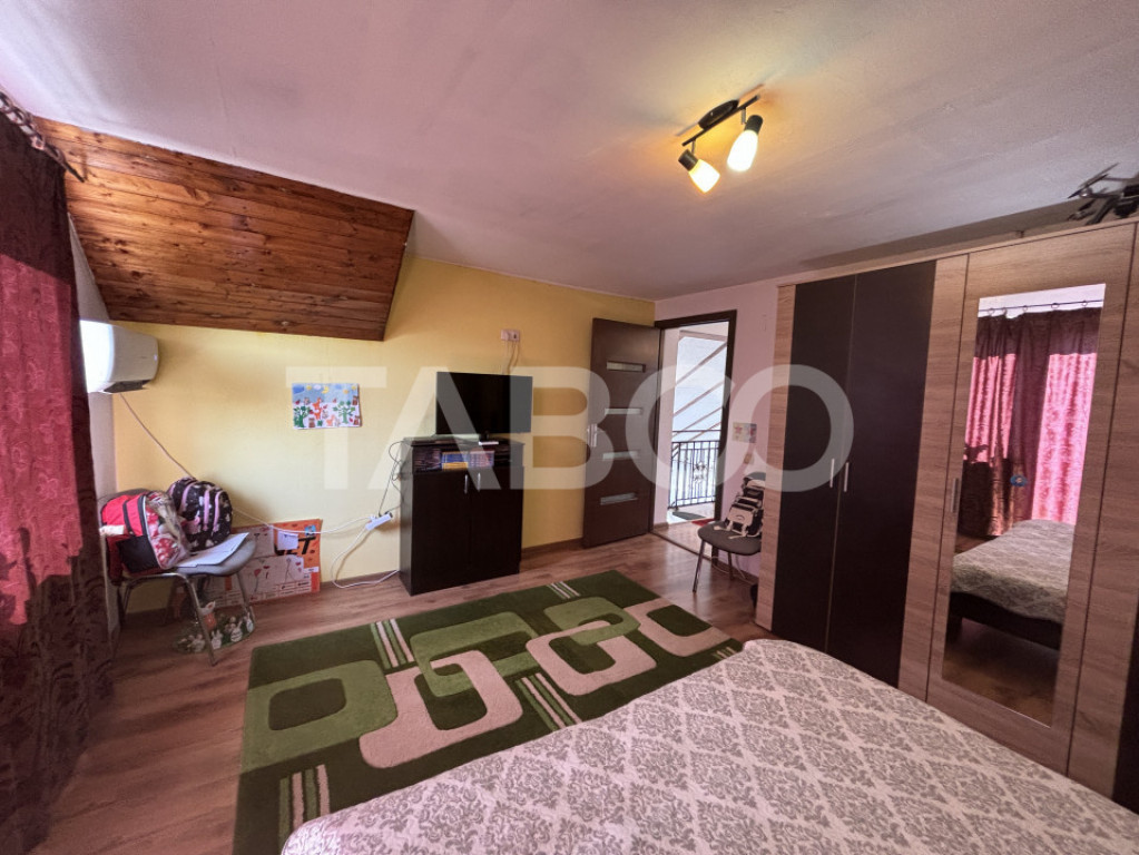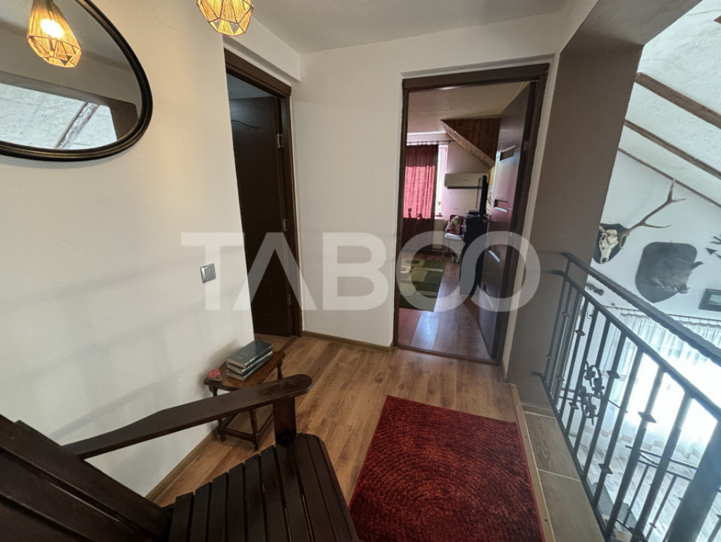 Aceasta casa spatioasa cu 4 camere situata in Sura Mare, la 4 kilometri de Sibiu, ofera un mix perfect intre confortul modern si farmecul unei vieti linistite intr-o comunitate primitoare. TABOO Imobiliare iti propune aceasta casa de vanzare cu 4 camere in zona, Sura Mare. Casa a fost construita in anul 2012, renovata in 2023 utilizand materiale de calitate superioara cu un design modern, are suprafata construita de 170 mp. Este o casa de tip individuala, cu un regim de inaltime Parter + mansarda. Casa este compartimentata astfel: ~ Parter: hol, living, 1 dormitor ,baie, bucatarie, terasa ~ Mansarda: hol, 2 dormitoare, baie, balcon; ~ Pod depozitare. Terenul casei are o suprafata totala de 670 mp, iar suprafata utila a casei este de 130 mp. Structura cladirii este din caramida si are sistem de incalzire cu centrala pe lemne, calorifere. Casa este mobilata complet si utilata. Casa are o curte libera 585 mp cu loc de parcare si suficient loc pentru zona de joaca a copiilor, 1 terasa de relaxare si spatiu de depozitare. Finisajele interioare sunt moderne: ~ Usa intrare: metal; ~ Usi interioare: celulare; ~ Tamplarie ferestre: pvc, termopan; ~ Podele: parchet, gresie; ~ Finisaj: finisat; ~ Pereti: vopsea lavabila, faianta. Pret: 234.900€ Cod ofertă / ID: P21567 Sună-ne acum la 0369.822.820 și află detalii despre această proprietate de vanzare din Sura Mare, dar și despre alte proprietăți potrivite pentru tine. Informatii speciale: 1. Descarcă aplicația pe mobilul tau "TABOO Imobiliare" din Apple Store, Google Play sau Huawei AppGallery pentru a afla instantaneu noile proprietăți care intră pe piață. 2. Dacă ai o proprietate pe care vrei să o vinzi sau să o închiriezi, suntem aici pentru tine! Contactează-ne pentru o evaluare gratuită fără obligații și vei descoperi avantajele de a lucra cu o echipă dedicată și experimentată. 3. Dacă vrei sa incepi o cariera de agent imobiliar, suna la 0369.822.820 si programeaza o intalnire pentru a afla toate beneficiile si avantajele. Intră pe TABOO.ro și descoperă cele mai recente oferte, actualizate zilnic. Anunt actualizat in 5 decembrie 2025. Id intern: P21567