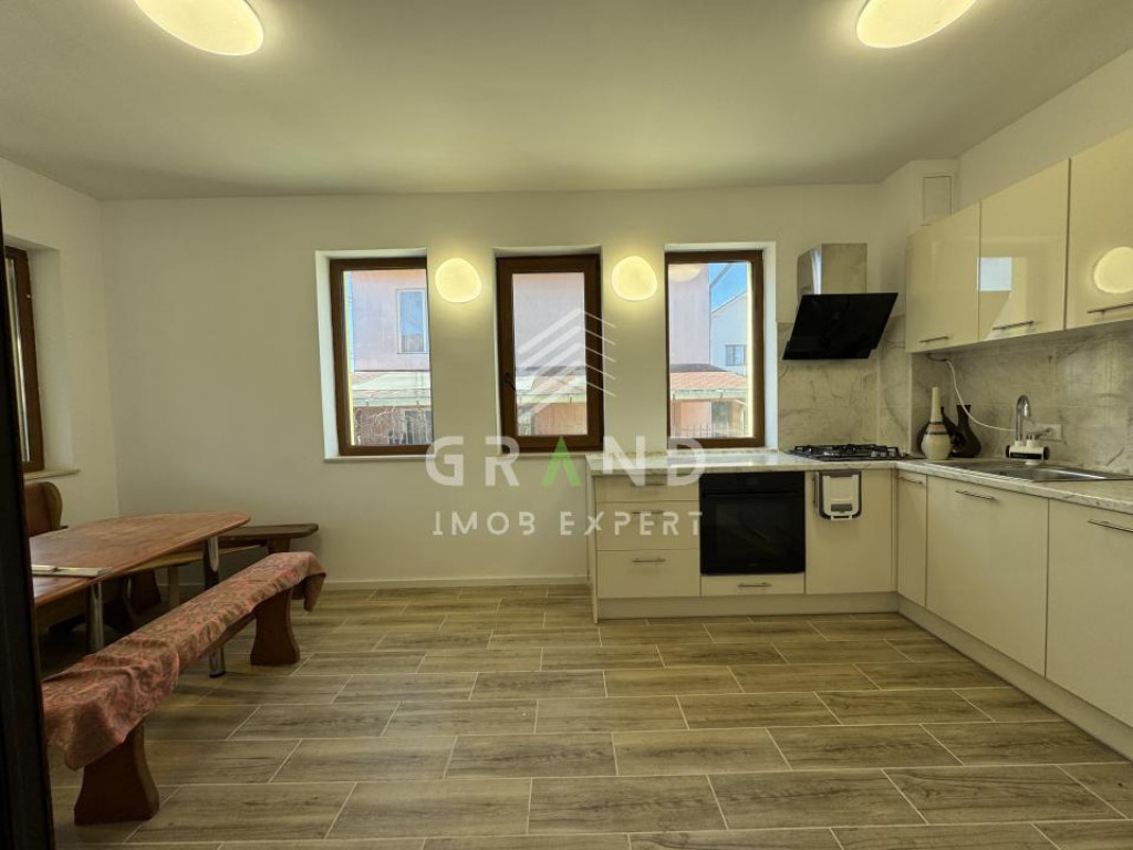 Casă individuală – 160 mp utili | 4 balcoane | Terasă | Curte privată | 3–4 parcări | Prima închiriere | Cartier Europa – Str. Eugen Ionesco Îți prezentăm spre închiriere o casă individuală nouă, aflată la prima utilizare, situată într-una dintre cele mai apreciate zone rezidențiale din Cluj-Napoca – cartierul Europa, pe strada Eugen Ionesco. Proprietatea se remarcă prin spații generoase, lumină naturală și o compartimentare foarte practică, fiind ideală atât pentru locuință, cât și pentru sediu de firmă, birouri sau alte activități profesionale. Casa are 160 mp utili, este bine organizată pe două niveluri și se închiriază exact așa cum apare în fotografii, fiind pregătită pentru utilizare imediată. Compartimentare Parter • living spațios și luminos, cu acces către terasă • bucătărie complet mobilată și utilată (plită pe gaz, hotă, cuptor electric, mașină de spălat vase, combină frigorifică, loc de luat masa) • cameră – ideală pentru birou sau dormitor, cu acces către balcon • baie Etaj • 3 camere / dormitoare generoase • fiecare cameră dispune de baie proprie cu geam • acces la balcon propriu pentru fiecare cameră Spații exterioare și facilități 160 mp utili 4 balcoane + terasă curte privată 3–4 locuri de parcare în curte două porți de acces automatizate cu telecomandă încălzire în pardoseală centrală termică proprie casă individuală – intimitate și confort Ideală și pentru activități profesionale Datorită compartimentării eficiente cu camere separate și băi proprii, proprietatea este extrem de versatilă, fiind potrivită atât pentru locuit, cât și pentru sediu de firmă, birouri, activități de consultanță, IT, arhitectură, cabinete sau alte activități profesionale. Localizare excelentă – Cartier Europa, zonă rezidențială liniștită, exclusiv de case, cu acces rapid către oraș. Nu se acceptă animale de companie. Această proprietate reprezintă o oportunitate rară pentru cei care caută o casă nouă, spațioasă și elegantă, într-o zonă premium din Cluj-Napoca. Pentru mai multe informații sau pentru programarea unei vizionări, vă stăm cu drag la dispoziție. Id intern: P155466