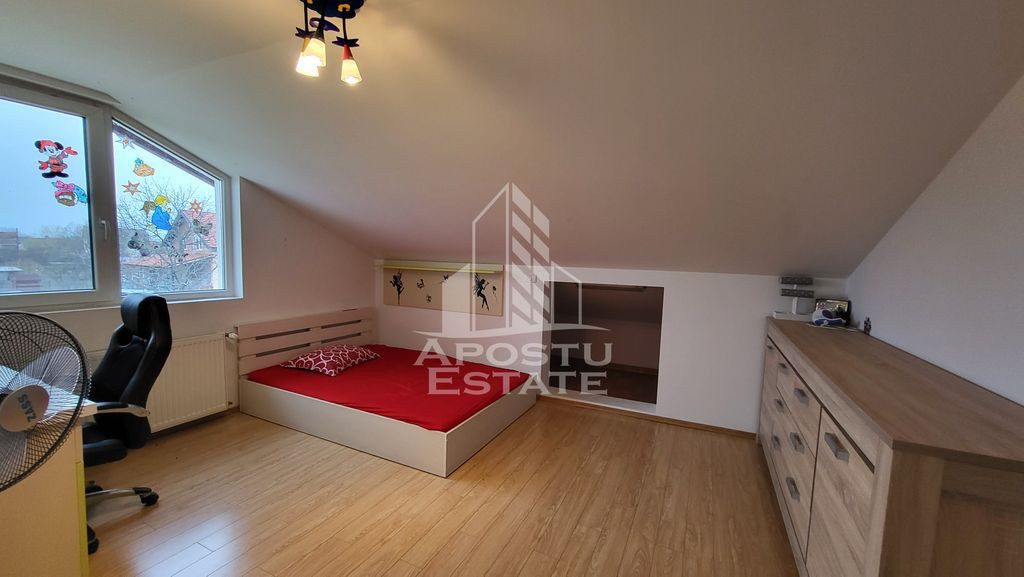 Apostu Estate va propune spre vanzare,o casa individuala,cu 3 dormitoare,in Becicherecul Mic. Construita pe structura din lemn P+1+M,casa se desfasoara pe o suprafata utila de 181 mp si o suprafata teren de 420 mp. Compartimentare: Parter -hol -baie -living cu bucatarie open space cu iesire in curte -camera tehnica cu iesire in garaj Etaj -3 dormitoare -1 baie Casa dispune de o suprafata generoasa de curte,atat pavata cat si cu spatiu verde. - 2 magazii -garaj cu telecomanda -supraveghere video si alarma -finisaje moderne si materiale de inalta calitate! Confortul termic este asigurat prin intermediul centralei pe curent si al climei,acum se pune si gazul in zona. Situata intr-o zona linistita de case,cu acees facil la supermarket,statie,la doar 15 minute de Timisoara! Va oferim consultanta si solutii de creditare prin colaboratorii nostrii! Disponibila imediat! Va asteptam cu drag la o vizionare!