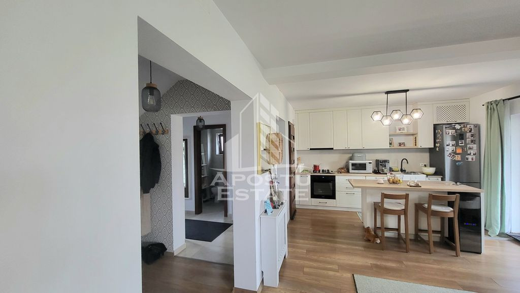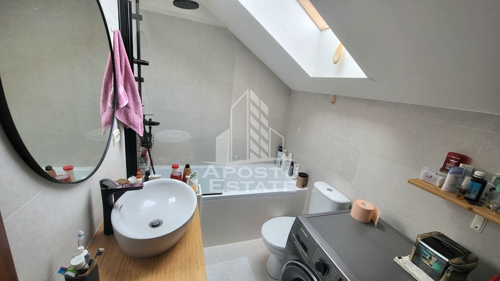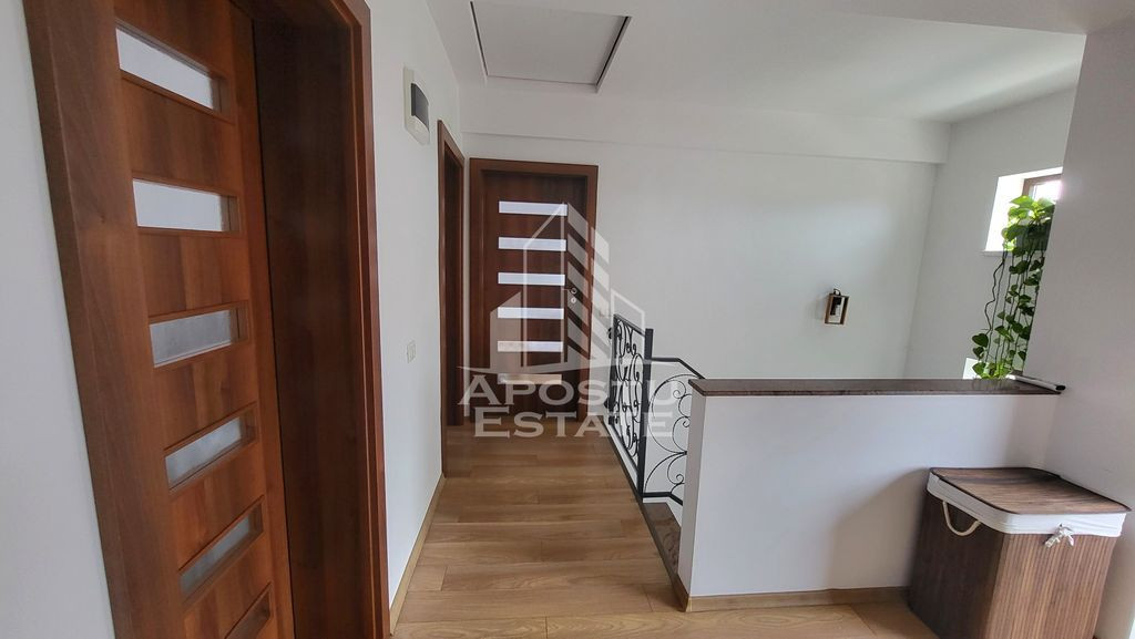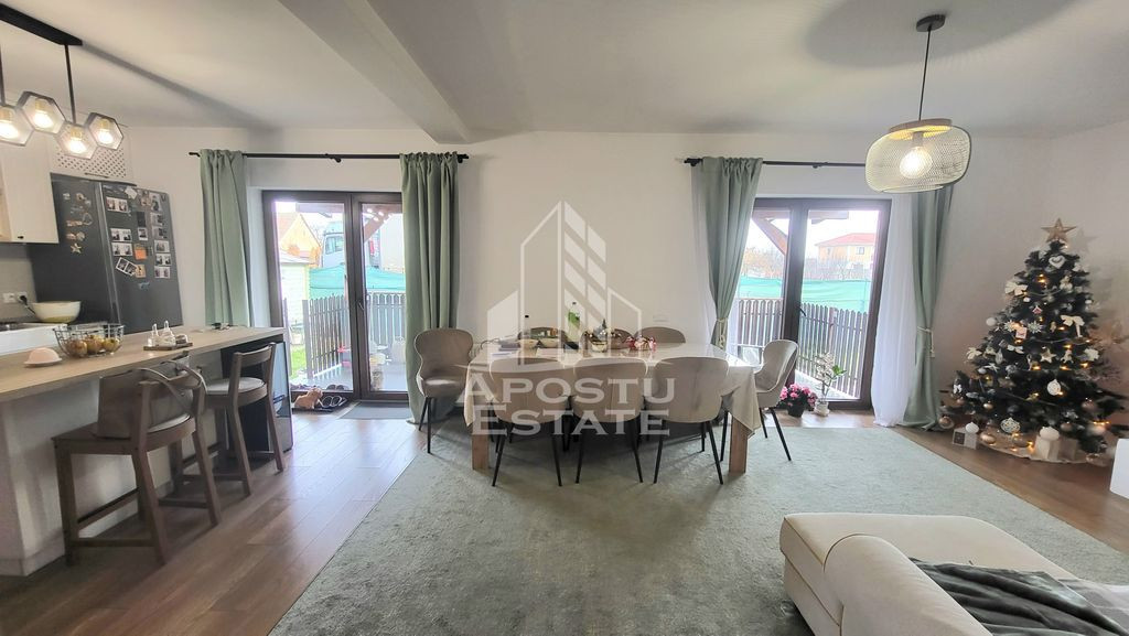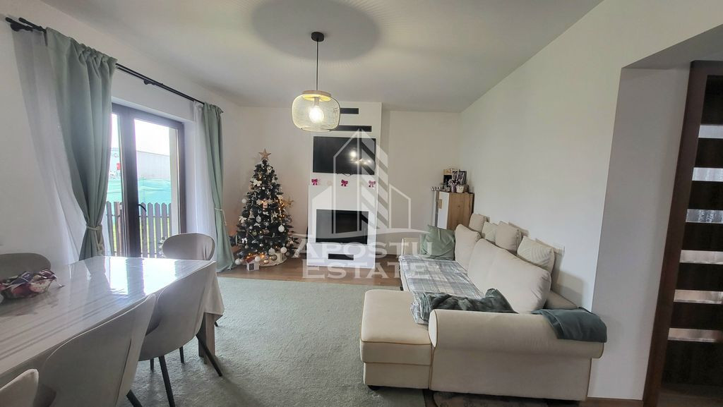 Apostu Estate va propune spre vanzare o casa individuala cu 5 camere,in Sacalaz,la doar 7 minute de Timisoara. Proprietatea se desfasoara pe o suprafata utila de 115 mp si o suprafata teren de 485 mp. Compartimentare: Parter: -hol acces -baie cu cabina de dus -birou/dormitor -living open space cu bucataria,cu loc de luat masa si iesire pe terasa -terasa acoperita Etaj -dressing -doua dormitoare -baie cu cada -terasa -pod pt depozitare Confortul termic se realizeaza prin intermediul centralei si al climei,incalzirea este in calorifere. Pozitie foarte buna,in apropiere de supermarket si statie,strada linistita,fara circulatie deschisa. Materialele,mobilierul si aparatura sunt de calitate superioara. Se vinde mobilata si utilata precum in poze. Permite accesul interior si dispune de doua intrari. Va oferim consultanta si solutii financiare prin colaboratorii nostrii! Va asteptam cu drag la o vizionare!