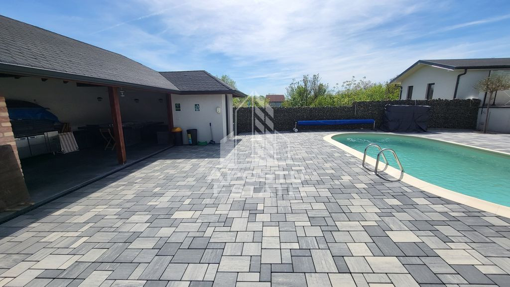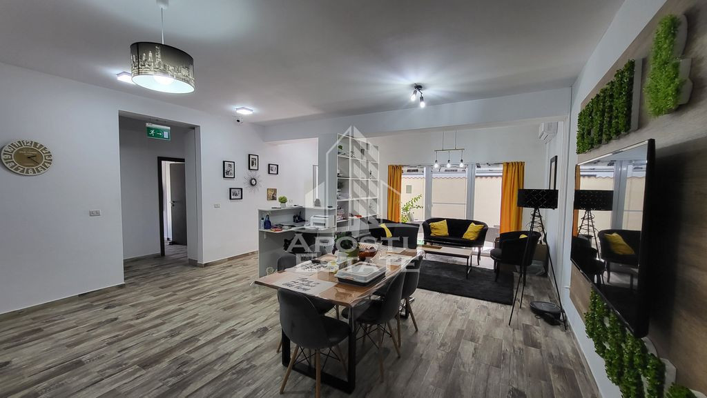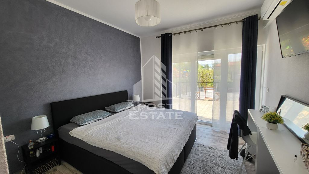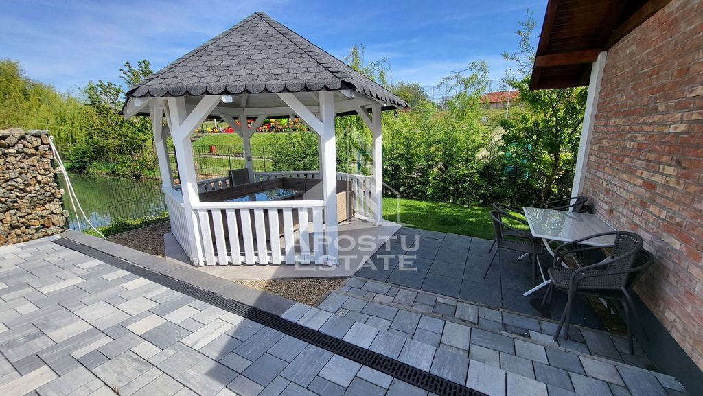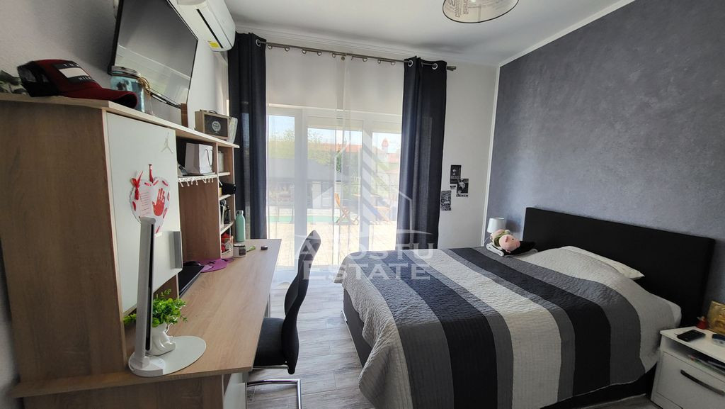 Apostu Estate va propune spre vanzare o oportunitate excelenta,ideala atat pentru a locui intr-o zona linistita,cat si pentru investitie. La doar 10 minute de orasul Timisoara,in localitatea Giarmata,va prezentam o casa individuala superba,cu o suprafata gereroasa de teren,o oaza de relaxare,eleganta si liniste. Imobilul dispune de un teren de 1080 mp,bine structurat si delimitat,configurat astfel: -teren amenajat pt parcare interioara,poarta automatizata. Casa individuala de 100 mp si 240 mp construiti, compartimentata astfel: -hol -living cu bucatarie open space complet mobilata si utilata -zona de dinning -3 dormitoare cu dressing,baie proprie si terasa cu vedere la piscina fiecare. -camera tehnica si spatii de depozitare. Confortul termic se realizeaza prin intermediul centralei proprii pe gaz,climei,al panourilor fotovoltaice si al celor 2 pompe de caldura,incalzirea este in pardoseala. Piscina incalzita cu ajutorul pompei de caldura,dispune de foraj la 125 m,apa sarata. Zona de barbeque dotata cu gratar,ceaun,loc de luat masa,baie proprie. Un mare plus al acestei proprietati il reprezinta costurile minime,de intretinere atat pt piscina cat si pentru caldura si curent,datorita energiei verde(2pompe de caldura si panouri). Mai beneficiem si de spatiu si teren liber,se mai poate construi daca se doreste ceva. Se vinde complet mobilat si utilat,exact ca si in poze. Va asteptam cu drag sa va prezentam aceasta superba proprietate si locatie! Va oferim consultanta si solutii de finantare,prin colaboratorii nostri! Pentru mai multe informatii nu ezitati sa ne contactati.