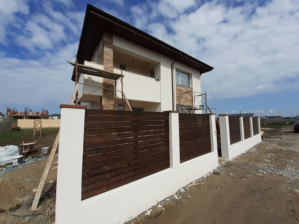 Casa are o suprafata construita de 231mp si o suprafata utila desfasurata de 181mp, P+1E finalizata anul acesta. Terenul aferent constructiei are o suprafata de 650mp. Compartimentarea pe fiecare nivel este urmatoarea: Parter- Birou 17mp, Living 25mp,Bucatarie 16mp,Baie 4mp,Terasa 20mp,Terasa8mp.Suplimentar, Pivnita 9mp si Magazie12mp. Etaj- Dormitor matrimonial 18mp cu baie matrimoniala 4mp.Dormitorul matrimonial se continua cu o terasa in suprafata de 10mp. Tot la etaj mai sunt 2 dormitoare in suprafata de 17mp si respectiv 13mp , deservite de o baie de 8mp. Casa este tencuita atat interior cat si exterior, pe exterior fiind izolata cu polistiren de 10cm EPS 120. Ferestre SALAMANDER cu geam tripan.Incalzire in pardoseala PURMO.Fiecare etapa a constructiei a fost urmarita de un diriginte de santier.Casa este foarte bine pozitionata in teren , spatiul verde fiind destul de generos.Aceasta casa este ideala pentru o familie cu 1-2 copii.Casa se vinde finisata , inclusiv curtea amenajata.
