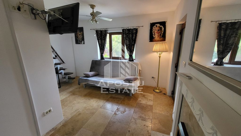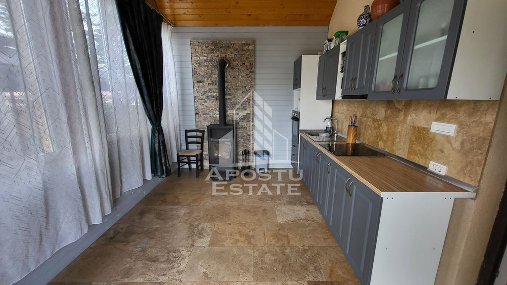 Apostu Estate va propune spre vanzare o casa indiduala cu garaj si teren de 726 mp in Dumbravita zona Cora. Constructia finalizata in anul 2022 pe parter se desfasoara pe o suprafata utila de 55 mp si dispune de urmatoarea compartimentare: -bucatarie inchisa. -living. -baie cu cabina de dus si boiler. -scara interioara. -dormitor la mansarda. -terasa -garaj de 36mp din structura metalica si panouri sandvich. Detalii tehnice: -structura de caramida porotherm. -izolatie ignifugata de 10 cm. -ferestre si usi cu tamplarie Salamander. -geamuri tripan. -aparat electric Gewiss. -tigla ceramica Tondach. -tencuiala decorativa Caparol. Confortul termic se realizeaza prin intermediul panourilor fotovoltaice optional al sobei Gewiss,al climei Daikin,si al semineului. Curte generoasa cu spatiu verde si pomi ornamentali,cu acces auto interior. Pentru relaxare beneficiati de o sauna proprie si un ciubar pt 8 persoane. Dispune de proiect aprobat pt duplex. Amplasata intr-o zona linistita de case,cu acces facil la supermarketuri,autostrada. Utilitati: -curent -apa de la foraj. -fosa. Posibilitate de racordare oricand la gaz,canalizare si apa. Va acordam consultanta si solutii de finantare prin colaboratorii nostrii. Disponibila imediat! Va asteptam cu drag la o vizionare! Disponibila imediat!