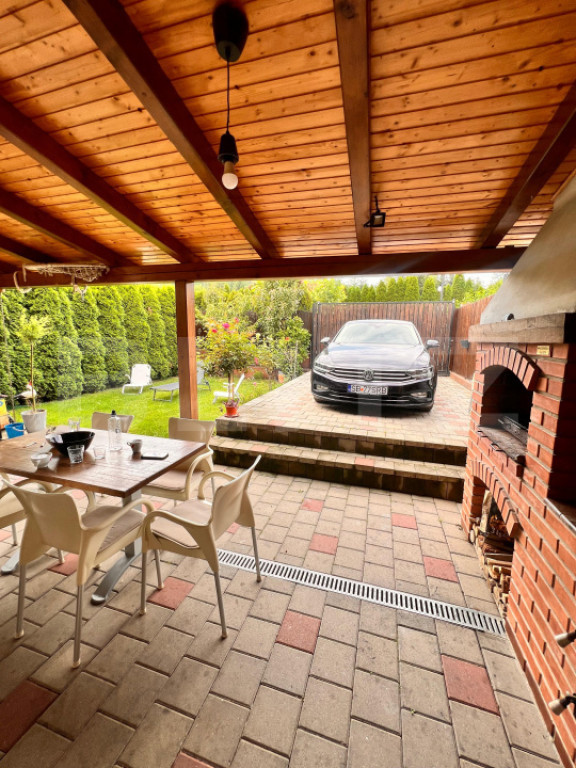 Curte amenajată cu terasă și zonă de grătar, perfectă pentru momente de relaxare sau socializare
