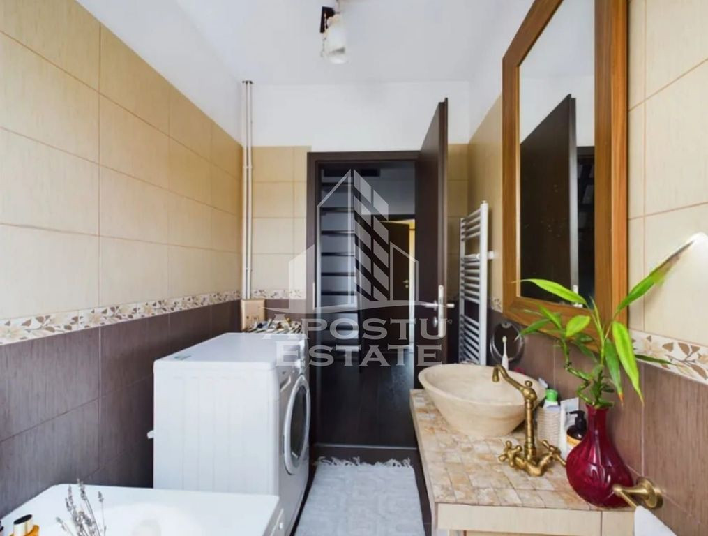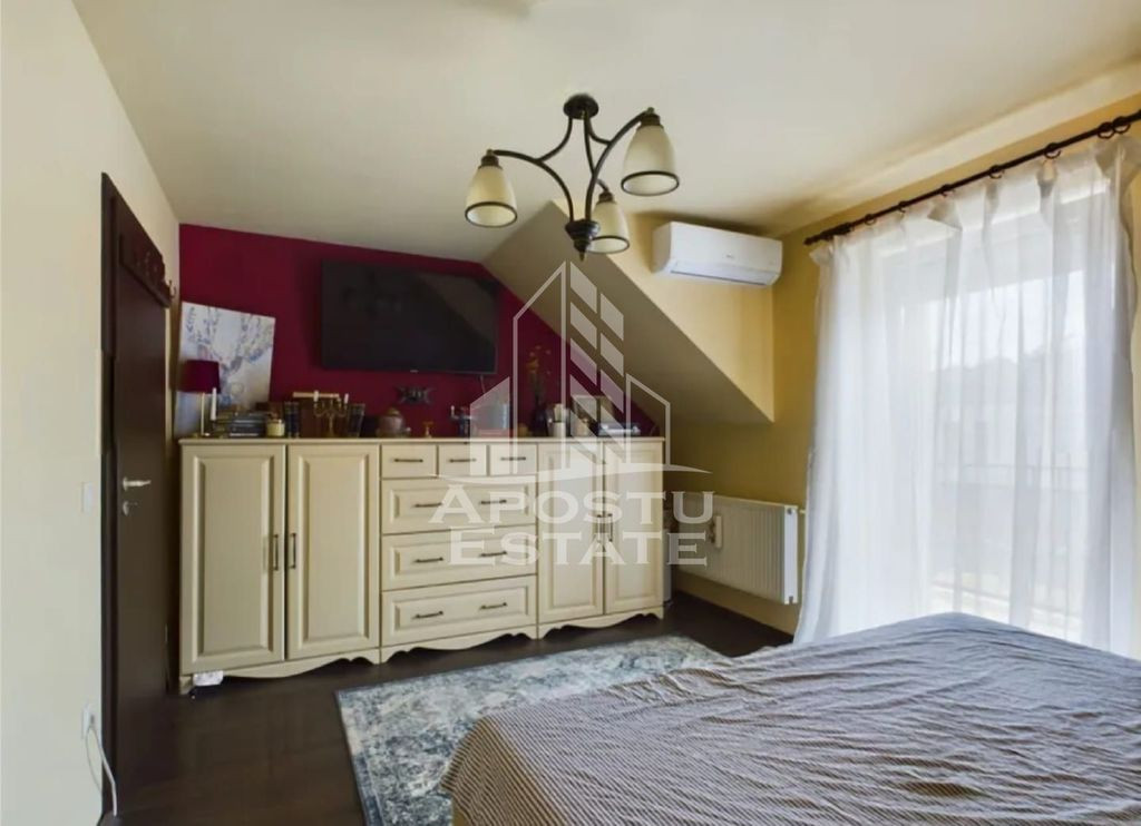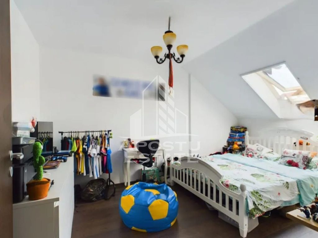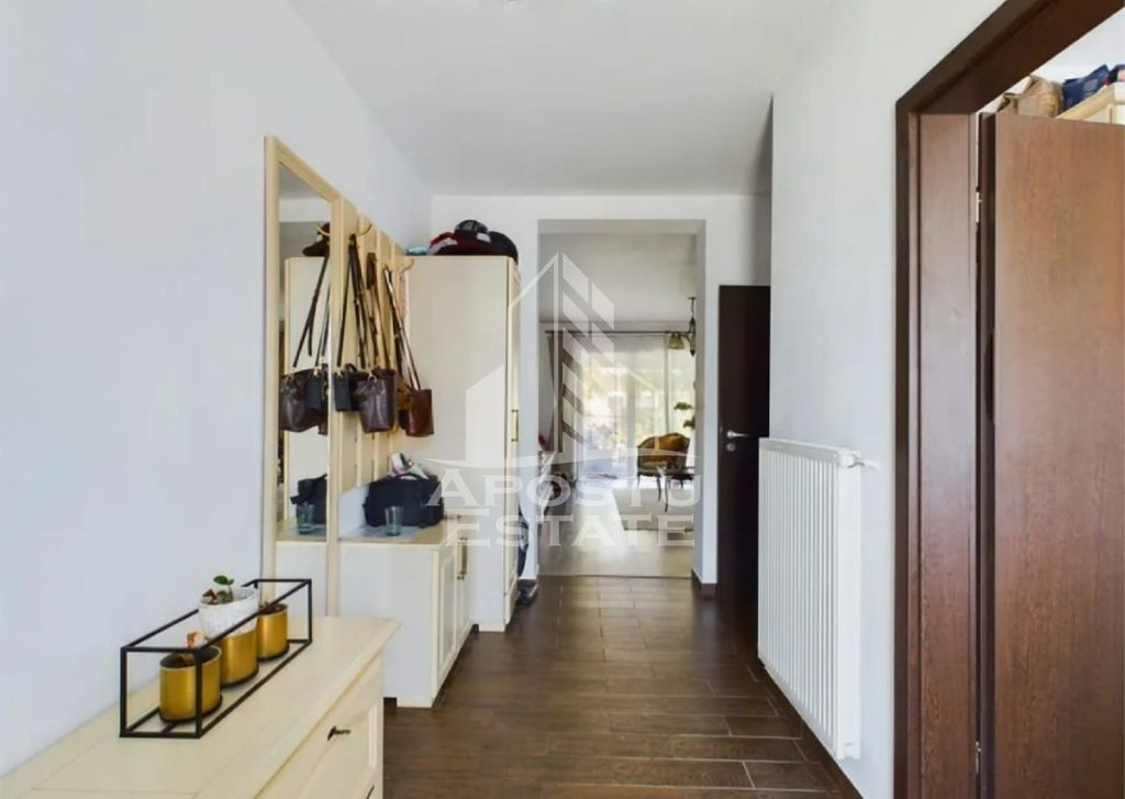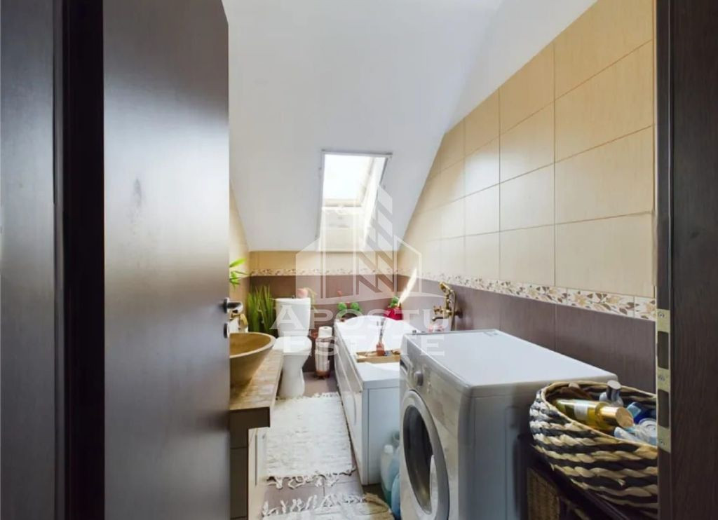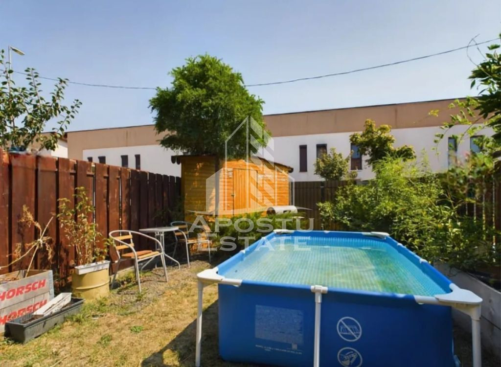 Apostu Estate va ofera spre vanzare o casa cocheta si luminoasa, situata in Dumbravita, in zona Padurii Verzi – una dintre cele mai cautate si verzi arii rezidentiale din nordul Timisoarei. Casa este dispusa pe doua niveluri si beneficiaza de o compartimentare functionala: – living generos, decorat cu bun gust, cu iesire spre terasa – 2 dormitoare spatioase, perfecte pentru familie – bucatarie separata, complet mobilata si utilata – 2 bai moderne (una cu cada, cealalta cu cabina de dus) – hol, casa scarii, balcon – pod mansardat locuibil, cu incalzire si geamuri, ideal ca birou, dressing, hobby room sau dormitor suplimentar Suprafata utila este de aproximativ 85 mp, iar terenul total 150 mp, perfect compartimentat cu: – terasa acoperita – zona verde cu vegetatie matura – piscina – spatiu de relaxare Dotari: – centrala proprie – masina de spalat, mobilier inclus – geamuri termopan – curte inchisa cu acces facil Vecinatati si puncte de interes: – Parcul Central Dumbravita – Padurea Verde – Lidl, Profi, restaurante si cafenele – Scoli si gradinite – Acces rapid spre Timisoara Distanta fata de centru Timisoara: – 7 km – 15–20 minute cu masina Aceasta proprietate imbina intimitatea si confortul cu accesul facil spre oras, fiind potrivita atat pentru locuire proprie, cat si pentru investitie. Oferim consultanta si solutii financiare prin colaboratorii nostri. Va asteptam cu drag la o vizionare! ID intern: CP2489633
