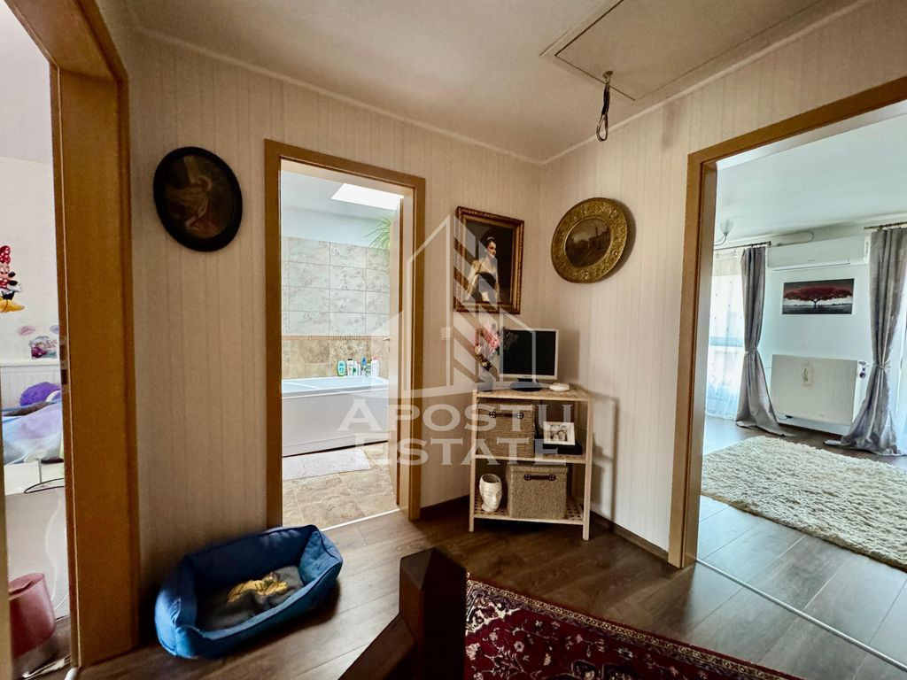 APOSTU ESTATE va propune spre vanzare un duplex modern, cu 4 camere 2 bai confort 1 sporit in Dumbravita langa padure. Imobilul se intinde pe o suprafata utila de 84 mp si este compartimentat astfel: Parter: -hol acces -dormitor/birou -living deschis -bucatarie in terasa acoperita -baie Etaj: -hol acces -dormitor matrimonial -dormitor cu dressing -baie cu cada -acces la pod dotat cu incalzire proprie,parchet si posibilitatea de mansardare Confortul termic se realizeaza prin intermediul centralei proprii pe gaz si al aerului conditionat. Oferim consultanta si solutii financiare prin colaboratorii nostri. Va asteptam cu drag la o vizionare! ID intern: CP2319717