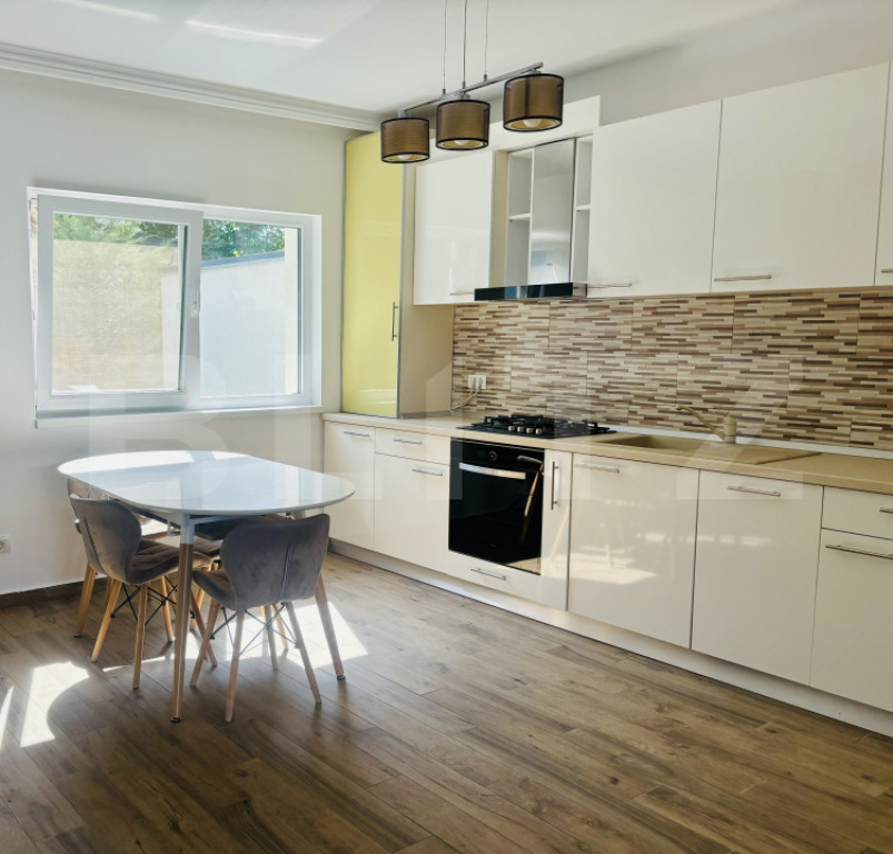 Blitz va propune spre vânzare această proprietate primitoare, construita în anul 2017 intr-un complex modern de case înșiruite. Cu o suprafață utilă de 74,5 mp și o curte intimă de 36 mp, locuința îmbină confortul și funcționalitatea într-un spațiu bine compartimentat. Parterul este gândit deschis, cu un living generos și bucătărie integrată, luminat natural și completat de o baie de serviciu și un spațiu de depozitare discret sub scară. La etaj, cele două dormitoare sunt luminoase și aerisite, deservite de o baie cu cadă, iar balconul închis adaugă un plus de intimitate și versatilitate. Casa dispune de două locuri de parcare înscrise în CF, oferind astfel siguranță și comoditate. Se află la doar 5 minute de Ikea și în imediata apropiere de stație pentru mijloace de transport, restaurante, magazine, farmacie și salon de înfrumusețare, ceea ce o face ideală pentru un stil de viață modern. Proprietatea se vinde parțial mobilată și utilată. Va așteptăm cu drag sa programați o vizionare! Cod ofertă / ID BLITZ: P152486 Id intern: P152486