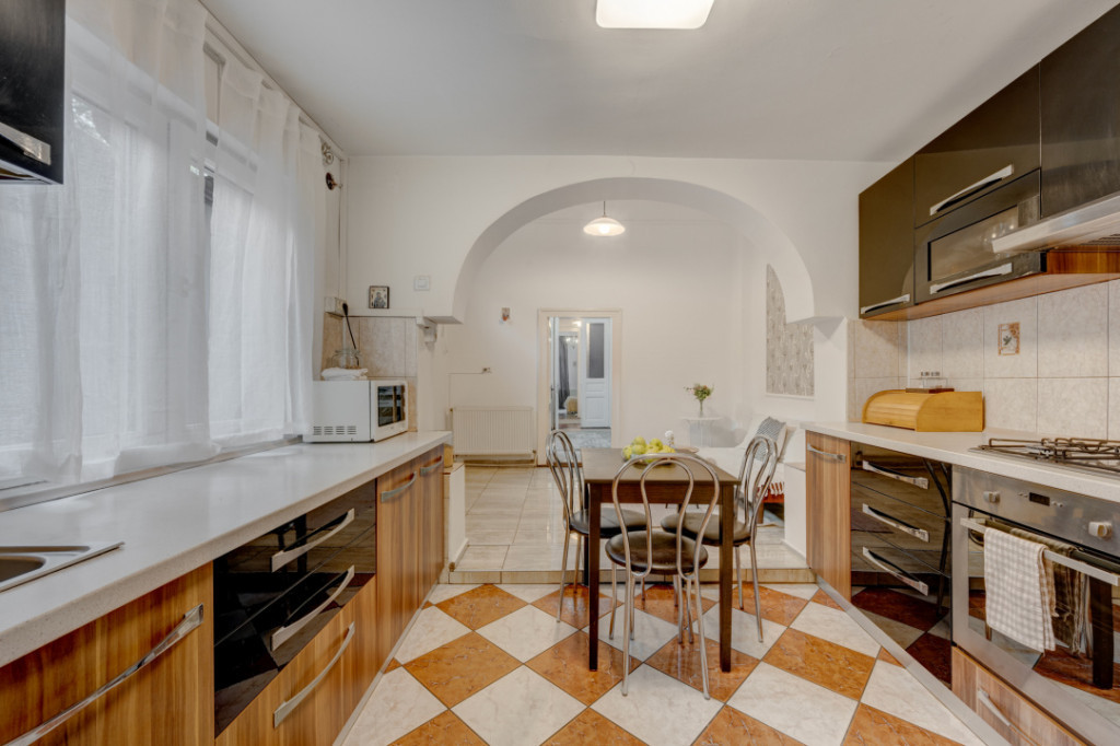 Va prezentam o casă primitoare, cu personalitate, situată într-o zonă centrală și liniștită a Bucureștiului, la doar 5 minute de mers de Mall Vitan și 10 minute cu mașina de Piața Unirii. Proprietatea, construită în perioada interbelică, păstrează farmecul autentic al caselor vechi — tavane înalte de 3 metri, usi interioare din lemn masiv si arhitectura exterioara originala. Casa a fost bine intretinuta - in ultimii ani au fost refacute acoperisul, baile, exteriorul casei iar curtea a fost pavata integral. Cu o suprafață utilă de 86 mp, casa este dispusă pe parter, compartimentare stil vagon, dispune de pivniță si se află pe un teren de 204 mp, din care 90 mp reprezintă curtea liberă. Spațiul cuprinde două zone distincte: Casa principală, formată din 3 camere luminoase, bucătărie și 2 băi cu duș; Un studio cu intrare separata, construit în locul fostei anexe gospodăresti, cu bucătărie și baie proprie — ideală pentru oaspeți, birou sau închiriere. Confortul termic este asigurat de centrala proprie, calorifere, si 2 unitati aer conditionat. Ca localizare, strada Siminocului se află între străzile Moruzzi și Anastasie Panu, la doi pași de strada Foisorului, într-un cartier liniștit, cu acces facil către toate punctele importante ale orașului. În apropiere se găsesc: Școli și grădinițe: Școala Gimnazială „Leonardo da Vinci”, Școala 81, Grădinița 21, Grădinița „Micii Exploratori”; Transport public: stații de autobuz și tramvai pe străzile Foisorului și Calea Vitan, iar stația de metrou Timpuri Noi se află la 15 minute de mers. Facilități: Mall Vitan, supermarket-uri (Mega Image, Profi, Lidl), farmacii, cafenele și restaurante; Spațiu verde: vis-a-vis se află un mic parc cu loc de joacă și Biserica Evanghelică Agape, ce adaugă zonei o atmosferă calmă și comunitară. O casă cu suflet, potrivită pentru o familie care caută liniștea intr-o zona centrala a orasului. Va stam la dispozitie pentru mai multe detalii. Id intern: CM19803
