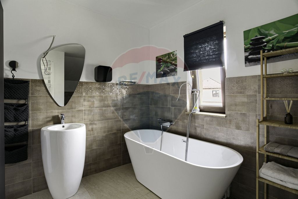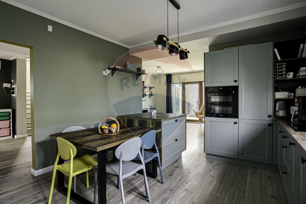 RE/MAX Dynamic te invitǎ sǎ descoperi aceastǎ casǎ eco-friendly, în cartier Via CARMINA, amplasatǎ într-o zonǎ de case liniştitǎ cu acces facil cǎtre centrul orașului. Casa cu regim de înǎlțime P+M, a fost construitǎ în anul 2019 pe fundație din beton armat, zidărie din cǎrǎmidǎ, centuri și grinzi din beton armat, planşeu din beton armat peste parter și lemn peste mansardă, şarpantǎ din lemn și învelitoare din țiglă ceramicǎ. Suprafața construitǎ a casei este de 201 m², iar suprafața utilǎ de 160 m² și este împǎrțitǎ dupǎ cum urmeazǎ: - Parter: garaj pentru douǎ mașini, carport, terasa acces, hol+living open space cu bucǎtǎria, o camara, baie mare, birou. Tot la nivelul parterului, avem o terasǎ de 20 m² închisǎ cu acces direct din sufragerie amenajatǎ ca și birou - Mansarda este compusa din hol, acces pod, 2 dormitoare, baie și un dormitor matrimonial cu acces la terasă de 40 m², baie proprie şi dressing Terenul pe care a fost construitǎ casa are o suprafațǎ totalǎ de 597 m² cu front stradal de 15 m. Casa dispune de urmatoarele beneficii si finisaje: - ferestre termopan - centralǎ proprie pe gaz - 2 aparate de aer condiționat - încalzire în pardosealǎ la parter - panouri fotovoltaice 7kw - sistem de irigat si puț forat - garaj pentru douǎ mașini si poartǎ, cu închidere automatizatǎ - carport pentru o mașină - Certificat de performanțǎ Clasa energetica A Această proprietate este ideală pentru cei care caută o casă modernă, complet automatizată, și o soluție sustenabilă pentru reducerea consumului de energie. Contactează-ne pentru mai multe detalii și programarea unei vizionări!