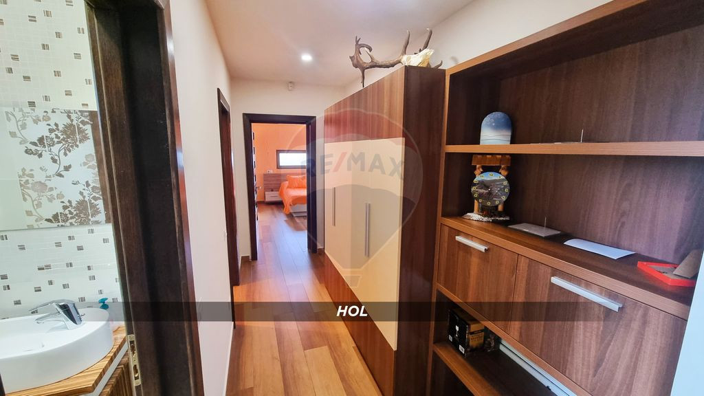 Vă propunem spre vânzare o proprietate remarcabilă, construită cu atenție la detalii și materiale premium, ideală pentru cei care își doresc confort modern, spații generoase și intimitate. Casa este dispusă pe parter și etaj (P+E), având o suprafață utilă de aproximativ 210 mp, și este amplasată pe un teren generos de 3657 mp, cu acces din drum comunal. Construcția este solidă și bine izolată, cu termosistem exterior din polistiren de 10 cm, ferestre PVC cu geam termopan dublu și rulouri exterioare din aluminiu, oferind eficiență energetică și un nivel ridicat de confort pe tot parcursul anului. Încălzirea se realizează prin pardoseală în întreaga locuință, cu centrală termică în condensare, fiind completată de aer condiționat în zona de living. Compartimentare: - Living spațios - Bucătărie complet utilata și mobilată - 3 dormitoare - 2 băi + 1 baie de serviciu - Cameră centrală termică - Garaj Caracteristici generale: - Construcție solidă - Anexă din cărămidă de aproximativ 60 mp - Teren complet împrejmuit - 7 locuri de parcare - Garaj cu ușă telecomandată și încălzire prin pardoseală - Beci - Pod utilizabil - Seif Confort & utilități: - Încălzire prin pardoseală în toată casa - Centrală termică in condensare - Apă curentă + fântână proprie - Canalizare - Curent trifazic - Aer condiționat (în living) Finisaje & dotări premium: - Casă izolată exterior cu polistiren de 10 cm - Geamuri termopan PVC duble - Rulouri exterioare din aluminiu - Ușă de intrare din lemn masiv - Uși interioare din stejar - Parchet masiv din lemn - Scări din stejar cu elemente din fier forjat - Două ferestre Velux cu acționare electrică - Posibilitate montare semineu Siguranță & tehnologie: - Sistem complet de alarmă - Camere de supraveghere exterior, cu înregistrare - Porți electrice din fier Exterior & relaxare: Zonă acoperită - terasă Livadă proprie cu pruni, peri și meri Informații suplimentare: - Credit bancar acceptat - Materiale folosite proveniență Franța, Germania & Italia - Mobilier din lemn masiv de stejar Casa oferă posibilitatea montării unui șemineu, existând deja horn/coș de fum și aerisire special concepute în acest scop, pentru un plus de confort și atmosferă O proprietate completă, construită cu atenție la detalii, care oferă confort modern, siguranță și un stil de viață premium. Pentru mai multe detalii, informații suplimentare sau pentru programarea unei vizionări, vă rog să mă sunați. Echipa noastra vă stă la dispoziție pentru a vă oferi suport complet pe parcursul procesului de achiziție și pentru a vă prezenta această proprietate deosebită.