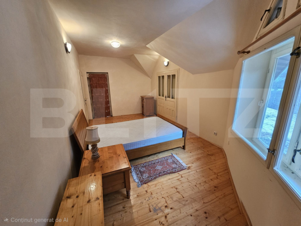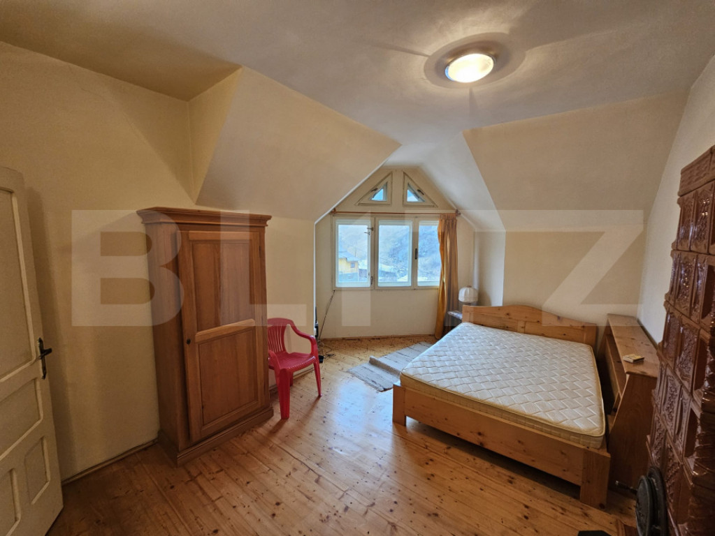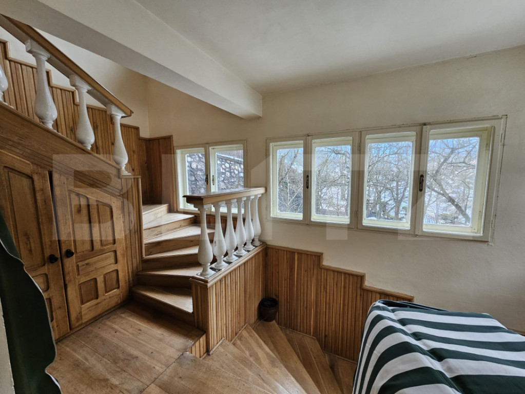Situată în pitoreasca localitate Scărișoara, la drumul principal și cu acces facil în orice anotimp, această proprietate impresionează prin amplasarea sa privilegiată și prin panorama spectaculoasă asupra dealurilor și munților din jur, precum și asupra râului care curge liniștit chiar lângă casă. Cu o suprafață utilă de 286 mp, casa este construită din piatră, oferind durabilitate, autenticitate și un farmec aparte specific zonei montane. Proprietatea beneficiază de priveliști uimitoare, ce pot fi admirate prin numeroasele ferestre mari care inundă interiorul cu lumină naturală. Compartimentare practică și generoasă: 5 camere, dintre care 4 dormitoare la etaj Living spațios la intrare, ideal pentru momente petrecute în familie Al doilea spațiu de relaxare la etaj, în zona scării interioare Bucătărie la parter, cu cămară 2 băi (parter și etaj) Hol la etaj, larg și luminos Balcon la unul dintre dormitoare, cu vedere superbă către munte Casa dispune de scară interioară solidă, trei intrări separate și acces în curte din trei puncte diferite, oferind flexibilitate și funcționalitate sporită. La demisol se află un beci generos, care poate fi amenajat ca spațiu de relaxare, zonă de odihnă sau pentru diverse activități recreative. Exteriorul completează perfect atmosfera de refugiu montan: Terasă și zonă special amenajată pentru picnic Grădină cu pomi Teren de 2.699 mp de fâneață, cu acces direct din curte Garaj separat, construit ca anexă la drumul principal, cu 2 locuri de parcare Încă un loc de parcare în curte Utilități și dotări: Curent electric Apă Sobe din teracotă Proprietatea se vinde mobilată și utilată Această casă este ideală atât ca locuință permanentă, cât și ca reședință de vacanță sau investiție în turism, oferind liniște, aer curat și o conexiune autentică cu natura, într-un cadru montan deosebit. Cod ofertă / ID BLITZ: P164365 Id intern: P164365