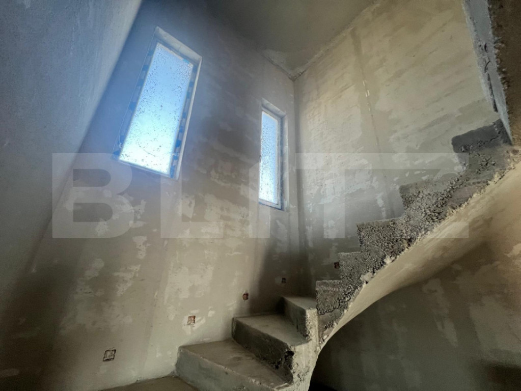 Blitz va propune spre vânzare o casă P+1 situată în zona Veteranilor, foarte aproape de oraș, construită cu arhitect și firmă de construcții. Imobilul se află la roșu la exterior și la gri la interior, oferind viitorului proprietar libertatea de a-și personaliza finisajele. Suprafața totală este de 233,24 mp (119,90 mp parter + 113,34 mp etaj), compartimentată eficient. Parterul cuprinde un living generos de aproape 32 mp, o bucătărie de 20 mp, dormitor de 14 mp, hol spațios cu scară de peste 20 mp, baie și două terase însumând peste 30 mp. Etajul oferă trei dormitoare mari, de 25 mp, 20 mp și 17 mp, fiecare cu balcon propriu, un dressing de aproape 6 mp, o baie de aproape 14 mp și hol. Casa beneficiază de ferestre mari pentru lumină naturală, instalație pentru încălzire în pardoseală, instalație pentru jacuzzi, curent trifazic și loc special amenajat în curte pentru baie exterioară. Zona Veteranilor este liniștită, dar în același timp foarte aproape de oraș, ceea ce face ca această proprietate să fie ideală pentru o familie care caută spațiu, confort și acces rapid către facilitățile orasului. Cod ofertă / ID BLITZ: P153567 Id intern: P153567