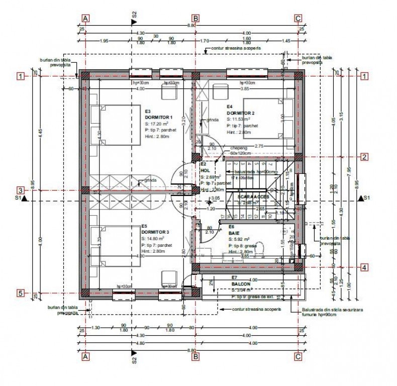* Placă de beton peste etaj (între etaj 1 si pod);