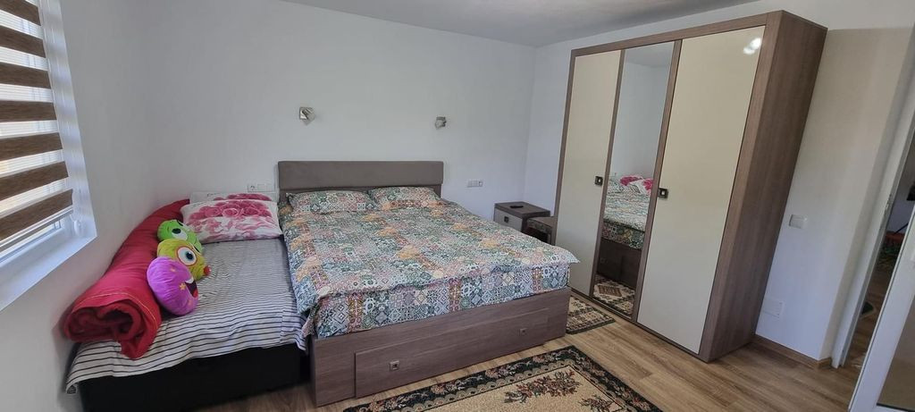 Casă complet mobilată și utilată – Lădești, jud. Vâlcea Vând sau schimb cu apartament 2 camere (et. 1–3) în Râmnicu Vâlcea Descriere: Vând casă situată în comuna Lădești, jud. Vâlcea, complet mobilată și utilată, gata de locuit. 2 dormitoare mobilate (Lems), baie, bucătărie modernă (electrocasnice noi) 2 holuri spațioase Încălzire electrică, panouri solare pentru apă caldă + instant GPL Bucătărie de vară (48 mp) cu grătar, afumătoare, plită pe lemne și baie Teren 1.386 mp cu pomi fructiferi + 4.960 mp teren arabil Anexe: fânar, magazie, garaj Fântână cu hidrofor, apă rețea, curent, cablu TV+internet, camere supraveghere Canalizare în curs de executare Distante: 50 km Râmnicu Vâlcea / 50 km Horezu / 35 km Drăgășani / 70 km Craiova