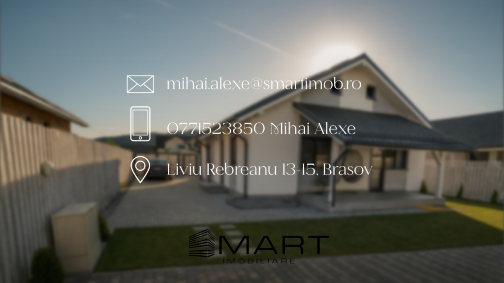 Descoperă liniștea și confortul unei locuințe moderne, aflate la doar 8 km de Brașov, într-un cartier nou, în curs de dezvoltare. Casa este amplasată pe un teren generos de 508 m², are o suprafață construită de 125 m² (din care 14 m² terasă acoperită) și o suprafață utilă de 90 m². Construită din cărămidă Porotherm Wienerberger cu cadre de beton, locuința este orientată și vitrată pentru a beneficia din plin de lumina naturală. Accesul se face pe un drum pietruit de aproximativ 150 m de la asfalt, într-o zonă cu case locuite și vecini stabili. Localizare și distanțe utile: 700 m până la stația de autobuz 2.6 km până la Lidl 8 km până în Brașov 11 km până în Centrul Civic al Brașovului Compartimentare: Living spațios – 37 m² Bucătărie open space – 12 m² (se poate închide la cerere) 2 băi – 5.5 m² fiecare Dormitor principal – 16.2 m² Dormitor secundar – 12.6 m² Terasă acoperită – 14 m² Finisaje și dotări incluse: Casa se predă la cheie, în termen de 12 luni, cu toate finisajele interioare și exterioare incluse. Gresie, faianță, parchet și uși interioare la alegerea clientului, în limita bugetului stabilit. Tâmplărie PVC Salamander, 5 camere, cu 3 foi de sticlă. Încălzire în pardoseală în baie sau opțional în toată casa Pod cu scară retractabilă, 2.1 m înălțime pe coamă, pe toată suprafața casei Gard cu stâlpi de beton în partea din față și lateral cu stâlpi metalici și panouri de lemn Utilități: gaz, apă, canalizare, curent electric și fibră optică la limita de proprietate Alte informații utile: Există mai multe variante de proiect, adaptate nevoilor clientului Nu se acceptă plata prin credit Se pot viziona proiecte finalizate și predate, dar și proiecte în curs de execuție Plata se face în tranșe pe perioada construcției, după achitarea unui avans de 30%. O casă luminoasă, solid construită și perfect echilibrată între confort modern, natură și acces facil către Brașov. Ideală pentru familiile care își doresc liniște, siguranță și un cămin pe termen lung. Id intern: P17972