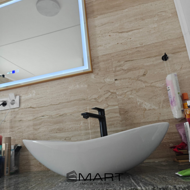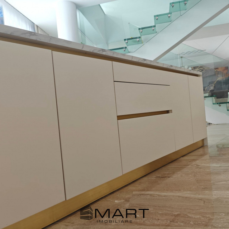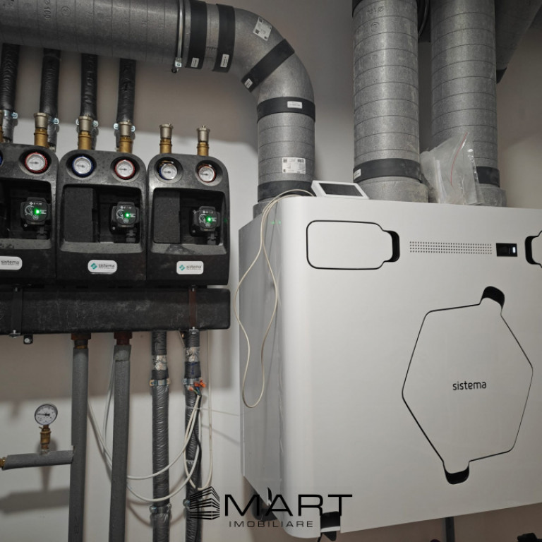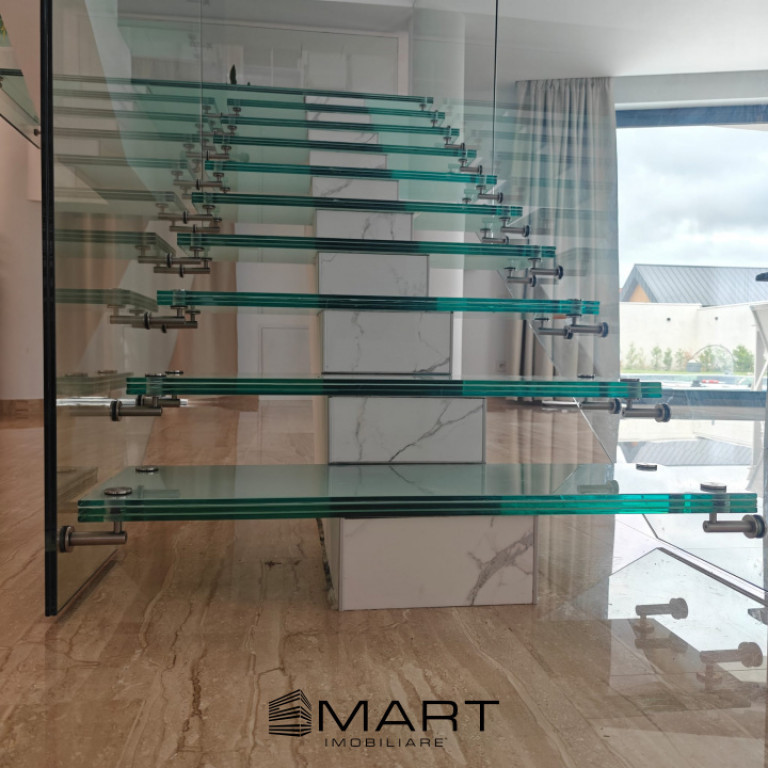 Smart Imobiliare vinde casa de lux situata intr-un cartier rezidential nou din Sura Mica. Casa dispune de un teren generos de 1000mp, din care liberi aproximativ 800mp. Curtea este amenajata cu zona verde si pavaj, piscina exterioara de 130mc incalzita cu pompa de caldura. Suprafata utila a casei este de 276mp dispusi pe 2 niveluri. Parterul dispune de un living generos de 46mp, bucatarie cu camara, baie, hol, birou si spatiu tehnic. Etajul este compus din 4 dormitoare, fiecare cu baie proprie, iar 2 camere dispun si de dressing si o terasa cu gresie flotanta de 24mp. Casa este nou construita, dispune de pompa de caldura, incalzire si racire in pardoseala, iar parterul are pardoseala de marmura, intrerupatoare inteligente cu comanda de pe telefon, usa de la intrare e smart cu comanda din telefon. draperii electrice, tamplarie PVC gama premium. Finisajele sunt din gama premium cu materiale de inalta calitate si atentie la detalii. Imobilul detine si un carport pentru 2 masini. Pentru detalii si vizionari, precizati ca ati vazut anuntul cu ID: P17721 Id intern: P17721