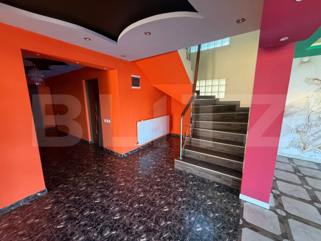 Proprietate tip P+E+M, cu o suprafață utilă de 519 mp, disponibilă spre închiriere. Potrivită pentru firmă, birouri, clinica privată, grădiniță, after-school, pensiune sau locuință pentru familie numeroasă. Imobilul dispune de 7 dormitoare, 3 băi, 2 livinguri spațioase și bucătării cu posibilitate de amenajare. Se închiriază nemobilat, oferind libertatea de organizare și compartimentare în funcție de nevoile chiriașului. Curtea, în suprafață de aproximativ 1000 mp, este complet pavată, oferind spațiu amplu pentru parcare, zonă verde, terasă sau activități recreative. Proprietatea beneficiază de toate utilitățile: apă, gaz, curent, canalizare și internet. Construcția este solidă, bine compartimentată, cu spații luminoase, aerisite și versatile, potrivite pentru diverse destinații comerciale sau rezidențiale. Disponibilă imediat pentru închiriere. Pentru detalii suplimentare și programarea unei vizionări, vă rugăm să ne contactați. Cod ofertă / ID BLITZ: P156953 Id intern: P156953