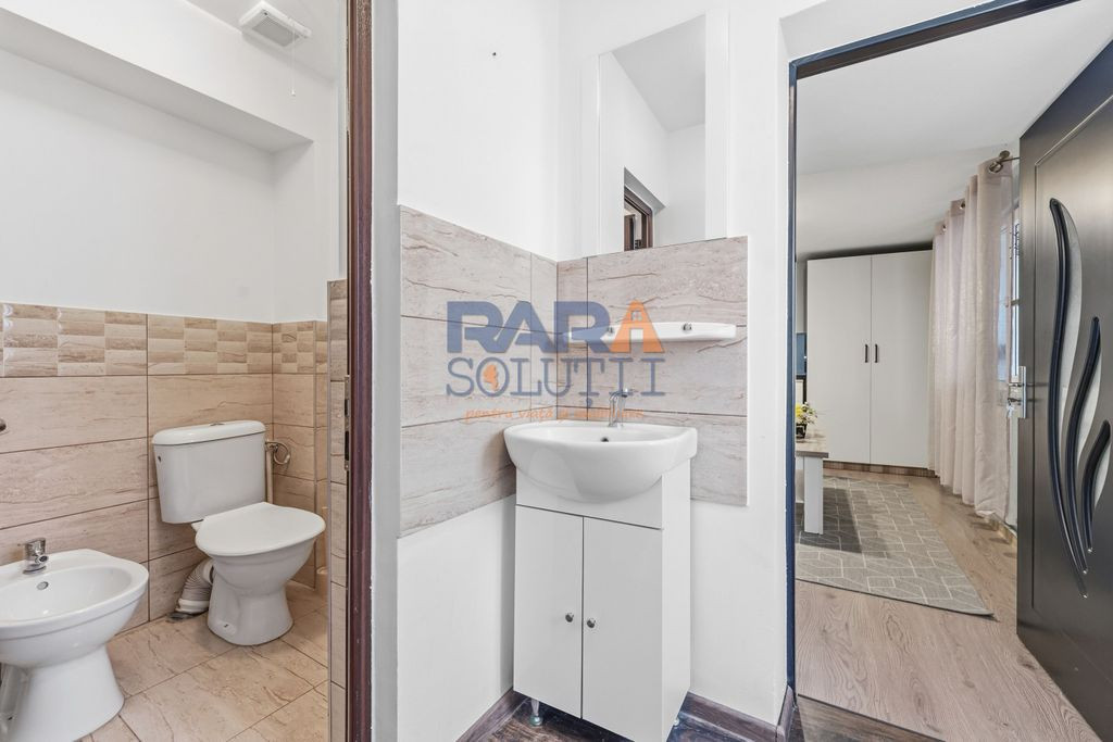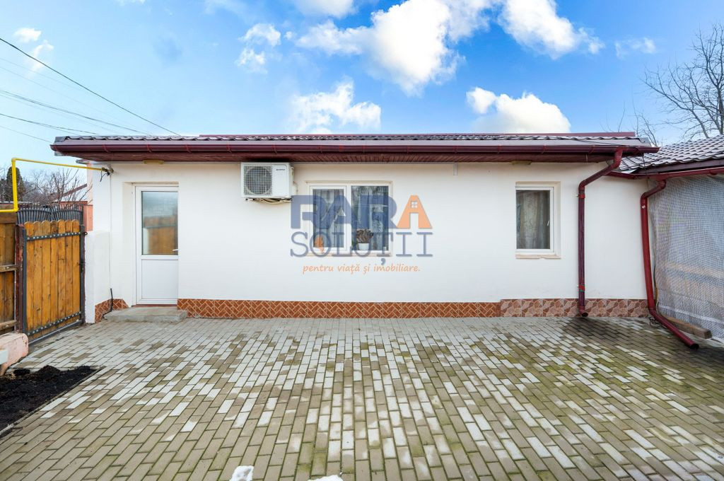 Casă de 50 metri pătrați, dotată ca în fotografii și compartimentată după cum urmează: - Hol intrare - Living cu bucătărie inclusă - Baie + Grup Sanitar (separat) - Dormitor - Terasă - curte (integral pavele) Cumpărătorul NU plătește comision.