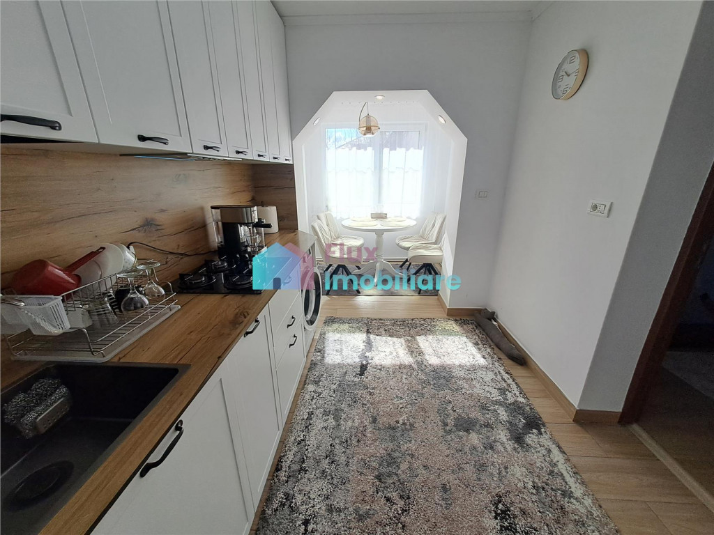 Flux Imobiliare va propune spre vanzare o casa individuala in Tisauti construita din caramida, cu izolatie din polistiren de 10 cm tencuiala decorativa. Se afla la strada asfaltata si iluminata, avand acces facil spre punctele de interes local: scoala, gradinita, primarie, magazine. Proprietatea dispune de suprafata de 255 mp teren imprejmuit cu gard metalic fundatie de beton placata. Casa are amprenta la sol de 110 mp, iar diferenta pana la 255 mp este formata din curtea amenajata cu pavele, gazon si arbusti ornamentali. Langa casa a fost construita o magazie foarte utila pentru depozitarea diferitelor obiecte sau unelte folosite in gospodarie. Imobilul are suprafata utila de 160 mp, cu parter etaj, fiind compartimentat astfel: - la parter: living spatios, loc pentru servit masa, bucatarie, hol, baie cu cada, vestibul. - la etaj: 3 dormitoare, dressing, hol, balcon Casa este racordata la toate utilitatile (apa si canalizare de la reteaua publica, energie electrica si gaz, incalzirea fiind asigurata de o centrala termica pe gaz calorifere. Locuinta se vinde mobilata complet (inclusiv perdele si covoare) si utilata partial. Icirc;n pretul de vanzare nu sunt incluse televizoarele, frigiderul si fotoliul de masaj. Pret 157000 euro negociabil. Se accepta si un schimb diferenta, cu apartament cu 3- 4 camere, in oras, la etajul 1 sau 2.