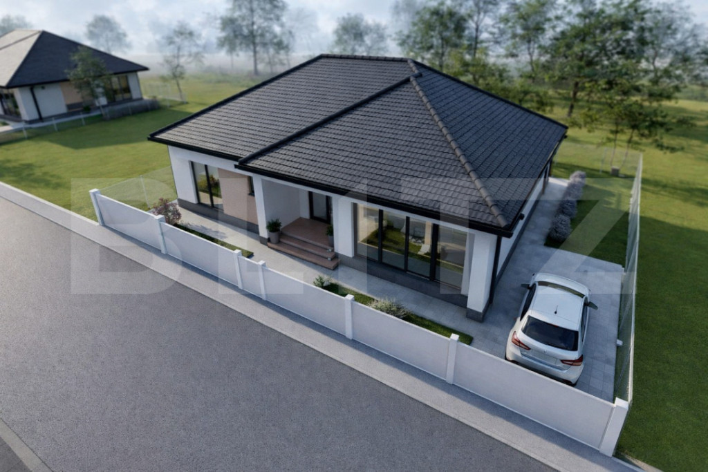 Blitz oferă spre vânzare casă individuală modernă, situată în zona Micești, Alba Iulia, ideală pentru cei care caută liniște, spațiu și confort, la doar câteva minute de oraș. Imobilul este construit pe un singur nivel și beneficiază de o compartimentare practică, cu o suprafață utilă de aproximativ 112 mp și o amprentă la sol de 149 mp, fiind amplasat pe un teren generos de 374 mp.   Compartimentarea este gândită eficient: • living spațios și luminos (~27 mp) • bucătărie separată • 3 dormitoare • 2 băi • birou / cameră multifuncțională • spațiu tehnic și dressing În plus, proprietatea dispune de terasă de acces și terasă parțial acoperită, perfecte pentru relaxare. Curtea liberă de aproximativ 225 mp oferă suficient spațiu pentru amenajare grădină, zonă de relaxare sau loc de joacă. ✔ construcție parter – confort maxim ✔ compartimentare ideală pentru familie ✔ zonă liniștită, aer curat ✔ acces facil către oraș Proprietatea este ideală atât pentru locuit, cât și ca investiție pe termen lung. Cod ofertă / ID BLITZ: P168187 Id intern: P168187