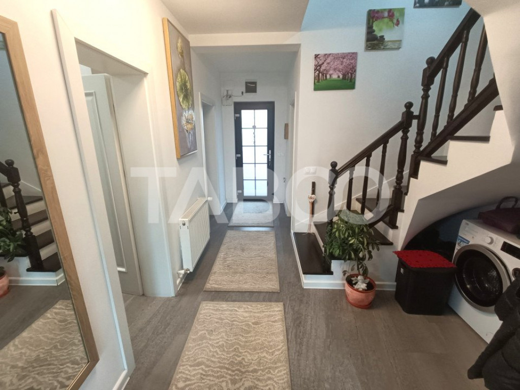 Cauti o casa spatioasa, utila, cu o curte mare frumos amenajata, cu o priveliste frumoasa si in imediata apropiere de Sibiu!? Casa moderna tip duplex de vanzare in Sura Mica, la doar 10 km de Sibiu, situata pe o strada privata cu acces auto restrictionat de bariera, intr-o zona rezidentiala selecta! Casa a fost construita in anul 2016 cu materiale de cea mai buna calitate si dispune de o suprafata utila de 120 mp, interiorul acesteia fiind renovat ultima data in anul 2021. Casa a fost construita pe un teren cu suprafata totala de 544 mp cu dublu front stradal de 11 m la doua strazi private, iar curtea ramasa libera in urma constructiei are 464 mp, amenajata cu gazon, o piscina supraterana de 12 mp si un carport auto. Casa detine si panouri fotovoltaice, ceea ce o face eficienta energetic. Casa este compartimentata decomandat, structurata pe 2 niveluri: - primul nivel: 1 living spatios, mobilat modern si cu acces pe o terasa de 14 mp, o bucatarie complet mobilata si utilata cu frigider, plita electrica, cuptor, hota, o baie, un hol de compartimentare si casa scarii; - nivelul al doilea este compartimentat in 2 dormitoare moderne, o baie spatioasa si un dormitor matrimonial cu baie proprie. Separat de suprafata utila a casei, s-a construit o camera de relaxare 35 mp ( construit din container ) dotat cu aer conditionat, semineu electric pentru incalzire, pardoseala din parchet, ferestre termopan, zona de gratar si loc de joaca pentru copii. Casa se vinde partial mobilata si utilata si dispune de finisaje si imbunatatiri precum: - acoperis de tigla - izolatie termica exterioara - incalzire cu centrala termica si calorifere - ferestre termopan cu tamplarie PVC - usa intrare PVC - usi interior: lemn - contorizare individuala: gaz, curent electric, apa - parchet, gresie - faianta, vopsea lavabila. Pret: 235.000€ Cod ofertă / ID: P25895 Sună-ne acum la 0369.822.820 și află detalii despre această proprietate de vanzare din Sura Mica, dar și despre alte proprietăți potrivite pentru tine. Informatii speciale: 1. Descarcă aplicația pe mobilul tau "TABOO Imobiliare" din Apple Store, Google Play sau Huawei AppGallery pentru a afla instantaneu noile proprietăți care intră pe piață. 2. Dacă ai o proprietate pe care vrei să o vinzi sau să o închiriezi, suntem aici pentru tine! Contactează-ne pentru o evaluare gratuită fără obligații și vei descoperi avantajele de a lucra cu o echipă dedicată și experimentată. 3. Dacă vrei sa incepi o cariera de agent imobiliar, suna la 0369.822.820 si programeaza o intalnire pentru a afla toate beneficiile si avantajele. Intră pe TABOO.ro și descoperă cele mai recente oferte, actualizate zilnic. Anunt actualizat in 28 ianuarie 2026. Id intern: P25895