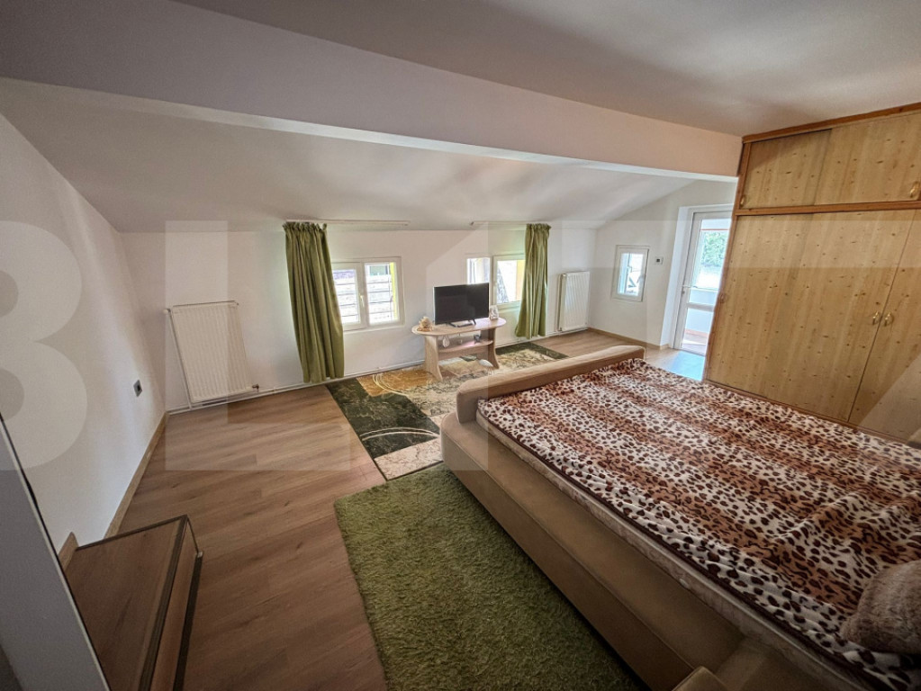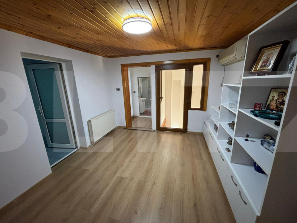 Blitz vă propune spre vânzare o casă mare, spațioasă și foarte confortabilă, situată în Arad. Ideală pentru o familie numeroasă sau pentru cei care își doresc un cămin generos, bine compartimentat și eficient din punct de vedere energetic. Proprietatea dispune de 7 camere, 3 băi, un living open-space cu hol deschis, extrem de spațios și primitor, o bucătărie modernă, complet mobilată și utilată, precum și de cămară. Bucătăria este dotată cu mașină de spălat vase, plită electrică și hotă, fiind pregătită pentru utilizare imediată. Una dintre băi este generoasă, amenajată cu vană și cabină de duș, oferind un plus de confort. În plus, una dintre camere a fost transformată într-un dressing mare, foarte practic și bine organizat. Casa impresionează și prin calitatea finisajelor interioare: scările și ușile sunt realizate din stejar, ceea ce oferă eleganță și durabilitate. Imobilul a fost renovat în anul 2020 și beneficiază de geamuri termopan tripan și curent trifazic. Un mare avantaj al proprietății îl reprezintă sistemele de încălzire, care sunt disponibile în 3 variante: -centrală pe lemne, -centrală proprie pe gaz, -pompă de căldură cu panouri fotovoltaice. În prezent, se utilizează pompa de căldură alimentată de panourile fotovoltaice, ceea ce oferă costuri foarte mici, chiar aproape de 0 pe tot parcursul anului. La exterior, proprietatea dispune de amprentă la sol de 350 mp, o terasă deschisă mare în spatele casei, ideală pentru relaxare, precum și de o mică zonă verde cu iarbă. În ceea ce privește parcarea, casa oferă spațiu pentru 4 autoturisme: -1 loc în garaj, -1 loc în curte, -2 locuri în fața casei. Această proprietate este alegerea ideală pentru cei care caută spațiu, confort, finisaje de calitate și eficiență energetică, într-o locuință pregătită pentru mutare. Cod ofertă / ID BLITZ: P169496 Id intern: P169496