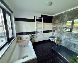 Finisaje: Interioare moderne cu parchet laminat și gresie. Obiectele sanitare sunt de la producători de top (Kludi, Geberit).