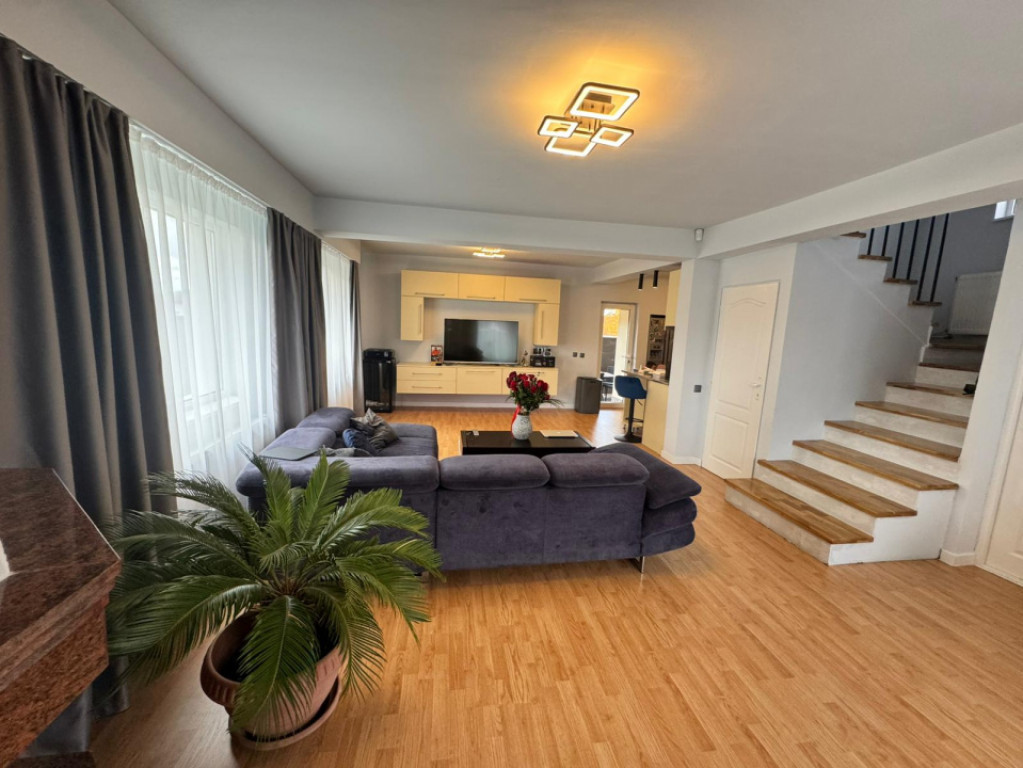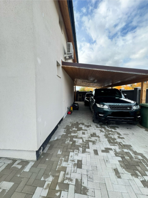 Blitz vă propune spre vânzare o proprietate deosebită, recent renovată (2024), situată într-o zonă rezidențială liniștită, ideală pentru cei care își doresc confort, intimitate și un stil de viață modern. Casa are o suprafață construită de 177 mp (78,17 mp parter + 78,17 mp etaj + garaj de 21 mp), fiind amplasată pe un teren de 404 mp, complet amenajat cu gazon și pavaj. ✨ Detalii și compartimentare: • Parter: living spațios și luminos, în regim open-space cu bucătăria, zonă de dining și acces direct către terasa exterioară. • Etaj: două dormitoare generoase, o baie mare cu cadă, un dressing încăpător și acces către podul util. ???? Dotări și finisaje: • Finisaje moderne, realizate cu materiale de înaltă calitate; • Sistem inteligent de alarmă și control al porților (acces prin aplicație mobilă – poartă mică plus poarta garaj); • Sistem de climatizare inteligent – centrală termică, încălzire și aer condiționat controlabile de la distanță; • Izolație exterioara, acoperiș din tablă, geamuri termopan; • Trei locuri de parcare, dintre care două acoperite; • Curte amenajată cu gazon natural, pavaj și terasă perfectă pentru relaxare. Proprietatea oferă un mix echilibrat între funcționalitate, eleganță și confort, fiind alegerea perfectă pentru o familie care apreciază liniștea, spațiul și tehnologia modernă integrată în locuință. ???? Avantaje suplimentare: • Casă renovată complet în 2024; • Sistem smart home integrat (climatizare, porți, alarmă); • Living open-space cu ferestre mari și lumină naturală abundentă; • Posibilitate de extindere în pod. Se poate achizitiona si cu un schimb de teren intravilan in zona (20 ari) plus diferenta Cod ofertă / ID BLITZ: P156374 Id intern: P156374