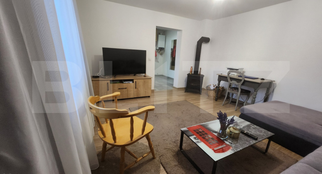 BLITZ vă oferă spre vânzare o casă modernă, complet renovată, situată într-o zonă liniștită din Ungheni. Proprietatea îmbină confortul modern cu funcționalitatea, fiind ideală pentru o familie mică sau un cuplu care caută un spațiu cochet, ușor de întreținut Detalii generale: Suprafață utilă: 70 mp Teren: 624 mp An construcție: 1975 Modernizare completă: 2019 Compartimentare: 2 camere spațioase Bucătărie open-space Hol Baie Debara Exterior: Terasă generoasă de 24 mp Garaj din lemn de 30 mp, dotat cu canal de inspecție Magazie anexă de 8 mp Fântână cu pompa submersibilă Construcție și dotări: Fundație: beton solid Pereți: cărămidă plină (30 cm) + izolație polistiren 10 cm Ferestre: termopan tripan Pod: podit și izolat cu vată minerală de 50 cm Încălzire: centrală pe gaz cu calorifere + șemineu din fontă Încălzire suplimentară în pardoseală, alimentată din returul caloriferelor Eficiență și confort: Datorită soluțiilor avansate de izolare termică și sistemelor de încălzire eficiente, costurile lunare de întreținere sunt foarte reduse. Casa oferă un climat confortabil în orice anotimp. Casă cochetă, complet modernizată, gata de locuit! O locuință ideală pentru cei care doresc liniște, confort și eficiență într-un spațiu modern și bine gândit. Vă așteptăm cu drag la vizionare Cod ofertă / ID BLITZ: P139274 Id intern: P139274