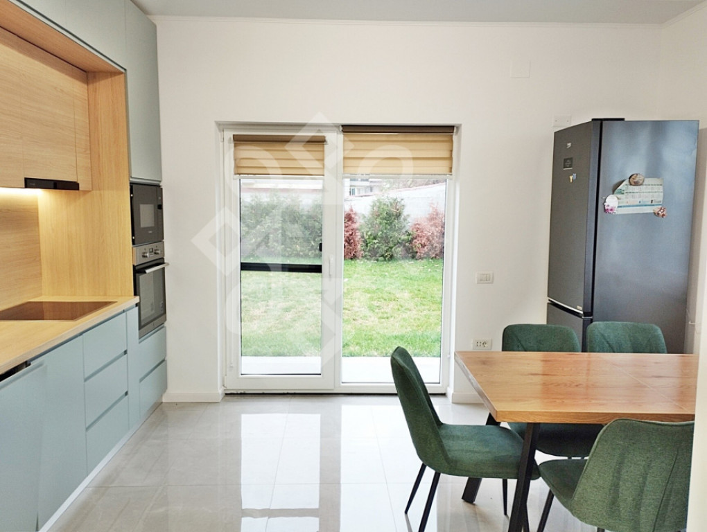 D`Art imob va ofera o casa moderna cu 3 dormitoare de inchiriat, situata intr-o zona linistita din Sanmartin, judetul Bihor. Casa este constructie noua, masoara o suprafata utila de 109 mp si este amplasata pe un teren de 500 mp, cu acces auto. Locuinta este decomandata si se compune din hol de acces, sufragerie spatioasa, bucatarie cu loc de luat masa, 3 dormitoare, 2 bai din care una e cu dus aferenta la dormitorul matrimonial si cealalta baie cu cada. Casa este amenajata modern si totodata minimalist, dotata cu electrocasnice de ultima generatie cum ar fi: semineu electric, 2 smart TV, aer conditionat, masina de spalat vase, frigider, hota, plita electrica, cuptor cu microunde, cuptor electric, masina de spalat haine, masina de uscat haine. Utilitati: electricitate, apa si canalizare de la retea, incalzire in pardoseala cu pompa de caldura si termostat in fiecare camera, panou solar pentru apa calda, boiler electric, internet, videointerfon. Strada pe care se afla casa este ferita de trafic, asfaltata si se afla in apropiere de Baile Felix, Baile 1 Mai, magazine, scoala si gradinita, la 5 km de Oradea. Pretul pentru aceasta casa de închiriat situata in Sanmartin este de 1000 euro / luna. ~~~~~~~~~~~~~~~~~~~~~~~~~~~~~~~~~~~~~~~~~~~~~~~~~~~~~~~~~~~~~~~~~~~~~~~~~~~~~~~~~~~~~~~~~~~ D`Art imob offers you a modern house with 3 bedrooms for rent, located in a quiet area in Sanmartin, Bihor County. The house is new construction, measures a usable area of 109 sq m and is located on a plot of 500 sq m, with car access. The home is detached and consists of an entrance hall, spacious living room, kitchen with dining area, 3 bedrooms, 2 bathrooms, one of which has a shower attached to the master bedroom and the other bathroom with a bathtub. The house is decorated in a modern and minimalist style, equipped with state-of-the-art appliances such as: electric fireplace, 2 smart TVs, air conditioning, dishwasher, refrigerator, hood, electric hob, microwave oven, electric oven, washing machine, clothes dryer. Utilities: electricity, water and sewage from the network, underfloor heating with heat pump and thermostat in each room, solar panel for hot water, electric boiler, internet, video intercom. The street on which the house is located is traffic-free, paved and is located near Baile Felix, Baile 1 Mai, shops, school and kindergarten, 5 km from Oradea. The price for this house for rent located in Sanmartin is 1000 euros / month. Id intern: P1155