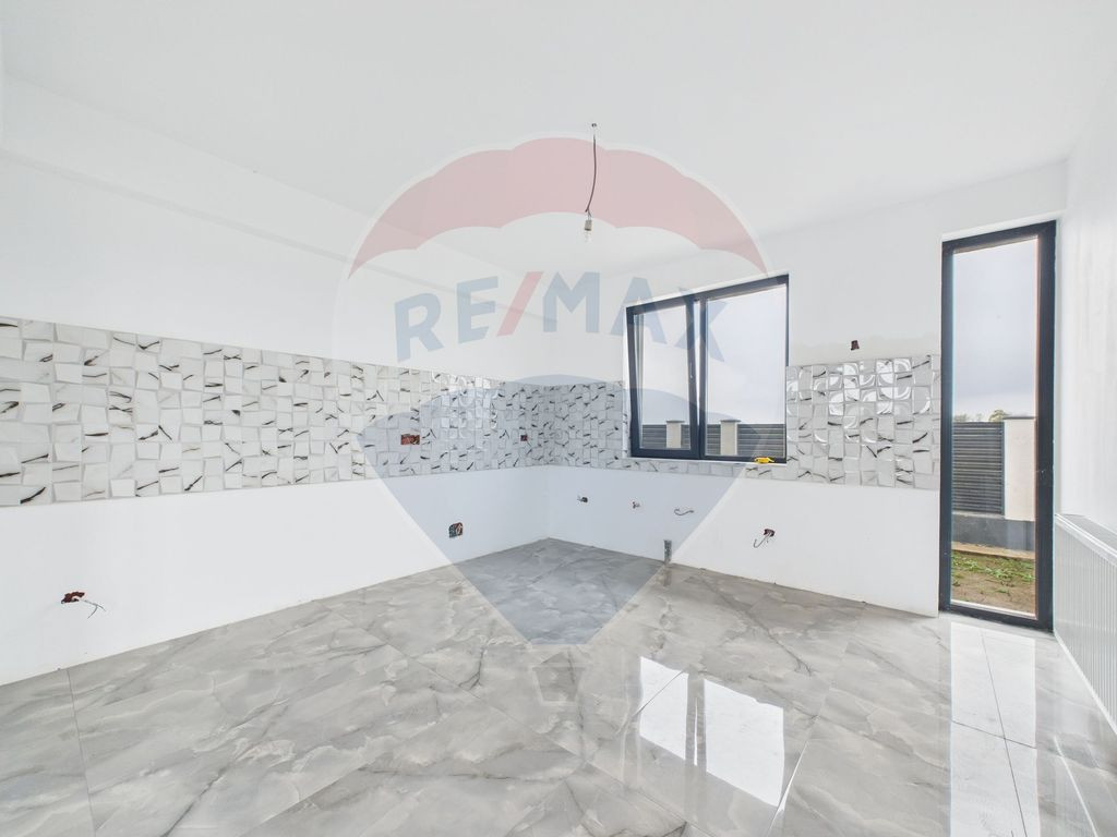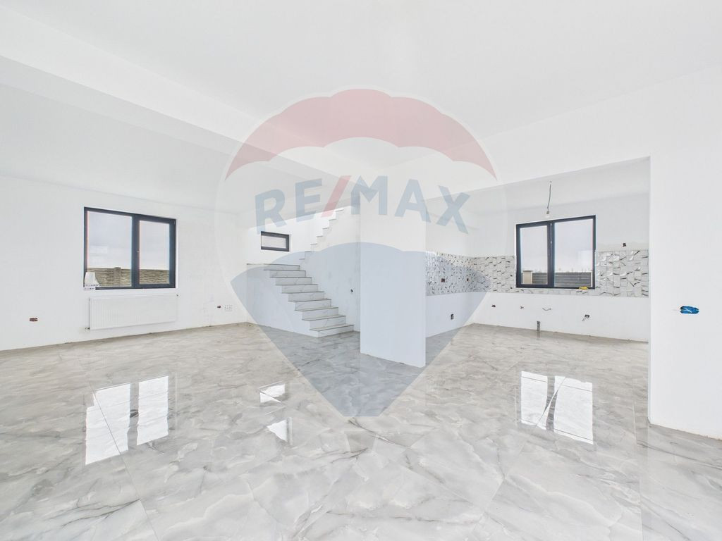 Descoperă o casă modernă, spațioasă și luminoasă, amplasată într-o zonă liniștită, aflată în plină dezvoltare, între comuna Găneasa și Moara Domnească. Proprietatea beneficiază de acces facil din DJ300, drum ce va asigura conexiunea directă cu Autostrada A0 – un avantaj important pentru cei care caută confort și accesibilitate rapidă către oraș. Casa este individuală, amplasată pe un teren generos de 432 mp, cu o curte liberă de aproximativ 300 mp, ideală pentru amenajarea unei grădini, zone de relaxare sau foișor. Construcția nouă are o suprafață utilă de 134,5 mp, compartimentată inteligent pe două niveluri: Parter (70.2 mp): bucătărie open-space cu posibilitatea de închidere cu geamuri decorative, living spațios cu zonă de dining, baie și cameră tehnică. Din zona de dining se face accesul către terasa de 8,5 mp, perfectă pentru momentele petrecute în aer liber; Etaj (60.5 mp): trei dormitoare luminoase, două dintre ele cu acces la un balcon comun, o baie și un al treilea balcon, poziționat la capătul holului. Casa se vinde în stadiul semifinisat, oferind viitorilor proprietari libertatea de a-și personaliza locuința după propriul gust. Printre finisajele deja realizate se numără: pardoseli placate cu gresie și parchet, tâmplărie PVC, uși interioare și exterioare montate, instalațiile electrice și sanitare trase (prizele și întrerupătoarele urmează să fie montate), sistem de încălzire cu radiatoare. Balcoanele urmează să fie, de asemenea, finalizate, completând aspectul elegant al etajului. Locuința se vinde cu băile nefinisate, oferind proprietarului libertatea de a alege mobilierul, gresia și faianța în funcție de propriul stil. Utilități disponibile: apă și fosă septică. Gaze și curent electric se află pe stradă, astfel că racordarea lor este posibilă rapid. Drumul de acces este pietruit, prevăzut cu stâlpi de iluminat, iar primăria are în plan asfaltarea zonei în perioada următoare. Această proprietate este alegerea potrivită pentru cei care își doresc liniște, confort și un spațiu modern pe care să-l personalizeze complet. Vă așteptăm la vizionare!