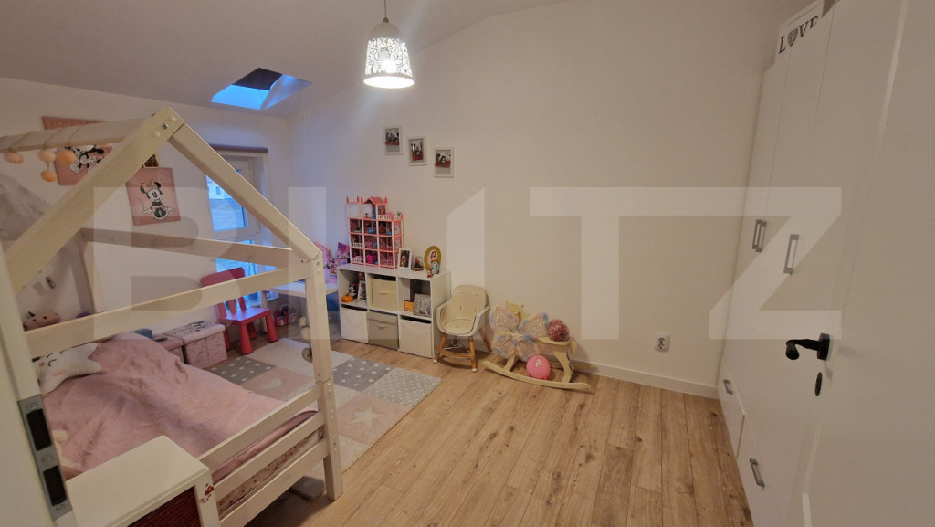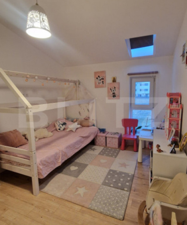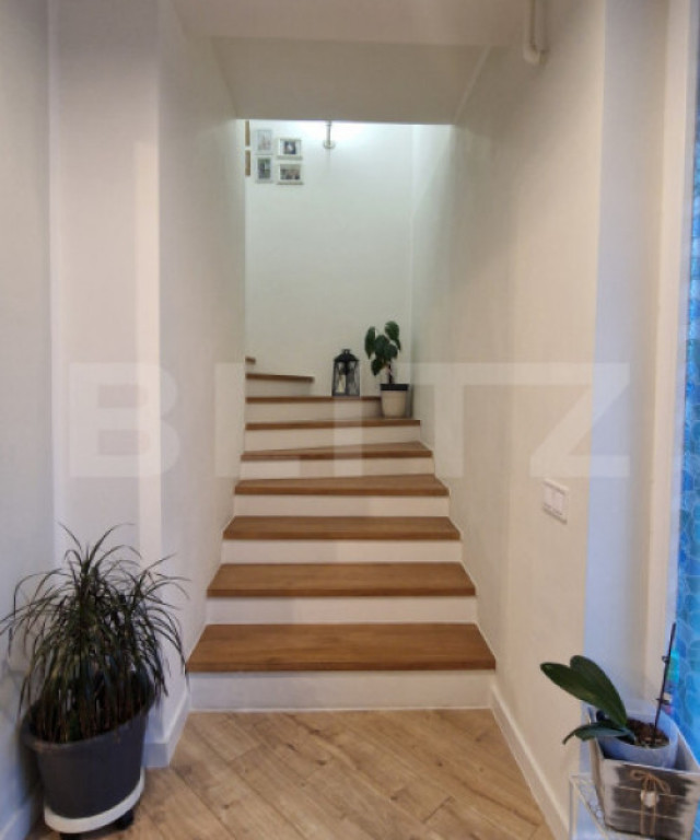 Blitz ofera spre vanzare o casa insiruita moderna, situata intr-un complex privat de case pozitionat in zona Terra, cu o suprafata utila de 82mp si gradina de aprox 40mp. Curtea amenajata cu gazon. Casa este compartimentata astfel: Parter: living open-space cu bucatarie, baie. Etaj: hol, 3 dormitoare dintre care unul cu baie proprie, baie comuna, balcon. Bucătăria este dotata cu mobilier mdf, plita/cuptor ,hota, masina de spălat vase, frigider, microunde. Scările interioare din lemn masiv, parchet grosime 12 mm. Accesul către Cluj-Napoca se poate face pe 1 din cele 3 variante: Centura de Nord, str Avram Iancu sau Centura de Sud. În imediata apropiere găsim cabinet medical, farmacie, carmangerie, brutărie, pizzerie, gradinita-cresa , având stația de autobus la 3 minute( transport spre la Cluj la fiecare 11 minute). In curte se pot parca lejer 2 masini, iar accesul se face de pe strada asfaltata. Casa face parte dintr-un ansamblu privat, dotat cu parcari subterane, curte cu pavele dedecat strict pietonal, zona de grill cu terasa acoperita si spatiu de joaca pentru copii. Cod ofertă / ID BLITZ: P166633 Id intern: P166633