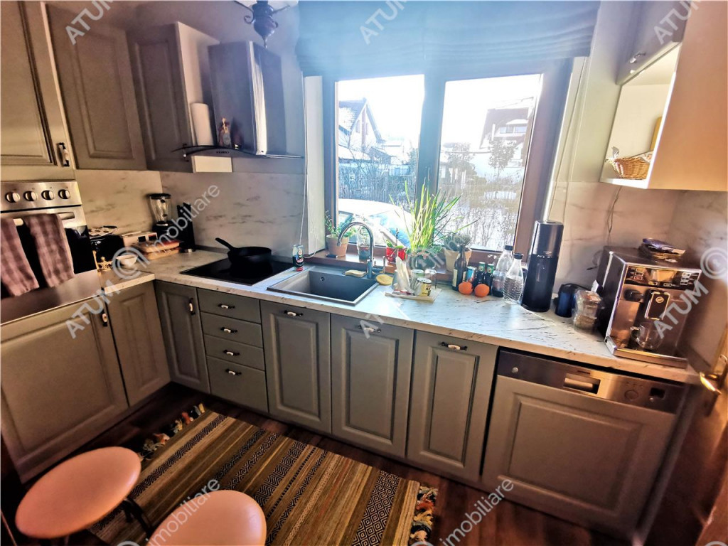 Casa individuala de vanzare cu 4 camere decomandate, piscina incalzita si carport, in zona Pictor Brana din Selimbar. Imobilul este structurat pe parter si mansarda, suprafata utila fiind de 115 mp iar compartimentarea excelenta: la parter regasim un living generos cu iesire pe terasa exterioara acoperita de 30 mp, nisa pentru gatit cu mobilier la comanda, baie cu dus tip walk in si camera tehnica; la etaj avem un dormitor matrimonial cu dressing, alte 2 dormitoare, o baie cu cada si geam pentru aerisire naturala. Terenul are deschidere de 24 mp cu acces auto spre carport, iar curtea libera insumeaza aproximativ 300 mp, aceasta fiind amenajata cu gazon si sistem de irigare automata, piscina exterioara incalzita. Ca si dotari detine: panouri fotovoltaice, sistem alarma si supraveghere video, geamuri termopan cu tamplarie PVC, parchet laminat, gresie, faianta, centrala termica proprie pe lemne, radiatoare din otel. Zona unde este amplasata casa fiind foarte linistita, situata pe o strada privata la o distanta de doar 2 minute fata de centrul comercial Shopping City Selimbar. Pretul de vanzare al imobilului mobilat si utilat este de 315.000 euro negociabil, exista posibilitatea de achizitionare si prin credit bancar. ID intern: 1381.