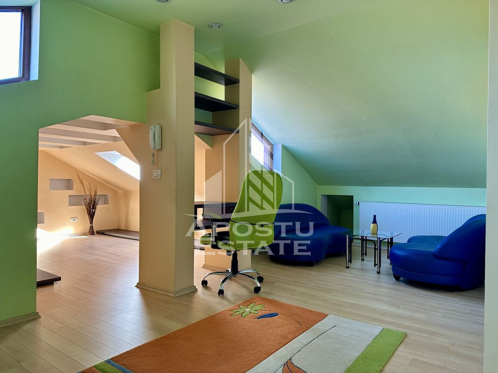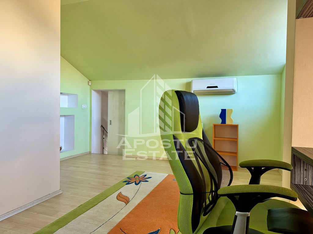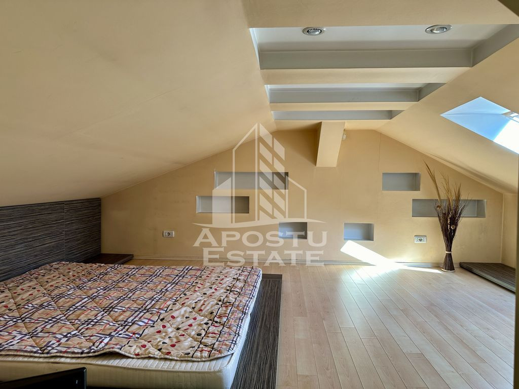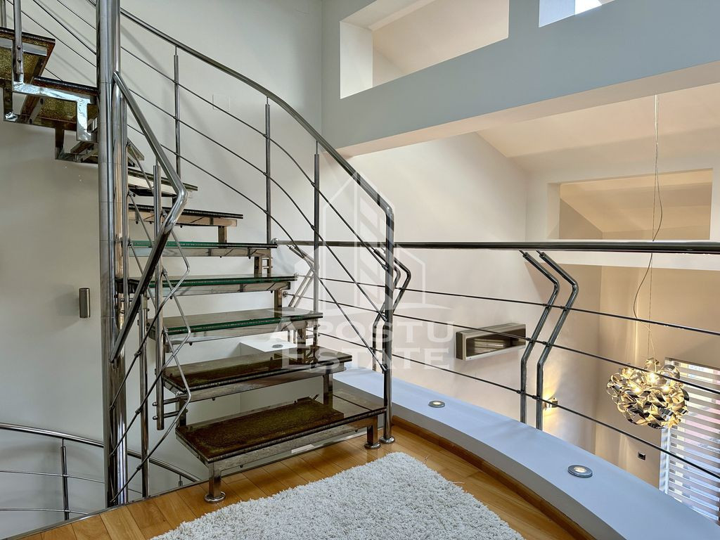 APOSTU ESTATE va propune spre vanzare o casa extravaganta de tip duplex in Timisoara, zona Aradului. Cu o suprafata utila de 200 mp casa prezinta urmatoarea compartimentare interioara: Parter; -hol de acces; -living deschis cu bucataria - baie cu dus; -terasa - garaj Mansarda: -3 dormitoare -baie cu cada; Podul este amenajat si dispune de o camera deschisa, un birou si o baie. Dotari: -incalzire in pardoseala la parter; -velux cu deschidere automata; -4 aparate de clima; -alarma; Proprietatea se vinde complet mobilata si utilata. Mobilierul si electrocasnicele sunt de calitate atent selectionate pentru o rezistenta indelungata. Oferim consultanta si solutii financiare prin colaboratorii nostri. Va invitam cu drag la o vizionare pentru a trai o experienta de neuitat intr-o proprietate de exceptie! CP1958070