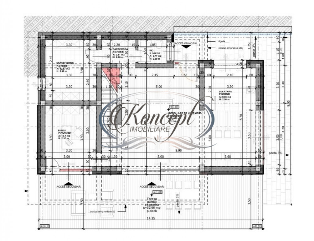 Koncept Imobiliare propune spre vanzare o casa individuala cu arhitectura moderna, amplasata in Popesti Deal, o zona apreciata pentru liniste, aer curat si privelisti spectaculoase asupra imprejurimilor Clujului. Pozitionarea pe o colina cu orientare sud-vestica asigura lumina naturala pe intreaga durata a zilei si o panorama deosebita asupra peisajului urban si natural. Imobilul este construit pe un teren de 600 mp si are o suprafata utila de 172 mp, dispusa pe doua niveluri (P+E). Compartimentarea inteligenta include 5 camere, 3 bai, o bucatarie cu posibilitate de inchidere, spatiu tehnic, dressing si holuri bine proportionate. Zona de zi se deschide catre o terasa generoasa de 50 mp la parter, iar etajul dispune de doua terase insumand 39 mp, oferind acces direct din fiecare camera, un detaliu rar intalnit si extrem de valoros pentru confortul cotidian. Casa se livreaza la stadiul de semifinisat, dotata cu sistem de incalzire prin pardoseala si centrala termica proprie, lasand viitorului proprietar libertatea de a personaliza finisajele finale. Designul modern, suprafetele vitrate mari si calitatea executiei definesc o locuinta contemporana, luminoasa si eficienta energetic. Termenul de finalizare este iulie 2026, iar dezvoltatorul permite adaptari ale compartimentarii in functie de nevoile cumparatorului. Aceasta proprietate este recomandata familiilor care apreciaza confortul, spatiul si legatura cu natura, fara a renunta la accesibilitatea fata de oras. Locatia, designul si calitatea constructiei transforma aceasta casa intr-o alegere inspirata pentru o investitie pe termen lung. Actele au fost verificate si validate de agentie. Pentru informatii complete, programarea unei vizionari sau pentru a afla oferta noastra completa va stam la dispozitie telefonic, prin e-mail sau la sediul agentiei noastre, pe str. Aviator Badescu, nr. 19, Cluj-Napoca. Id intern: P20860