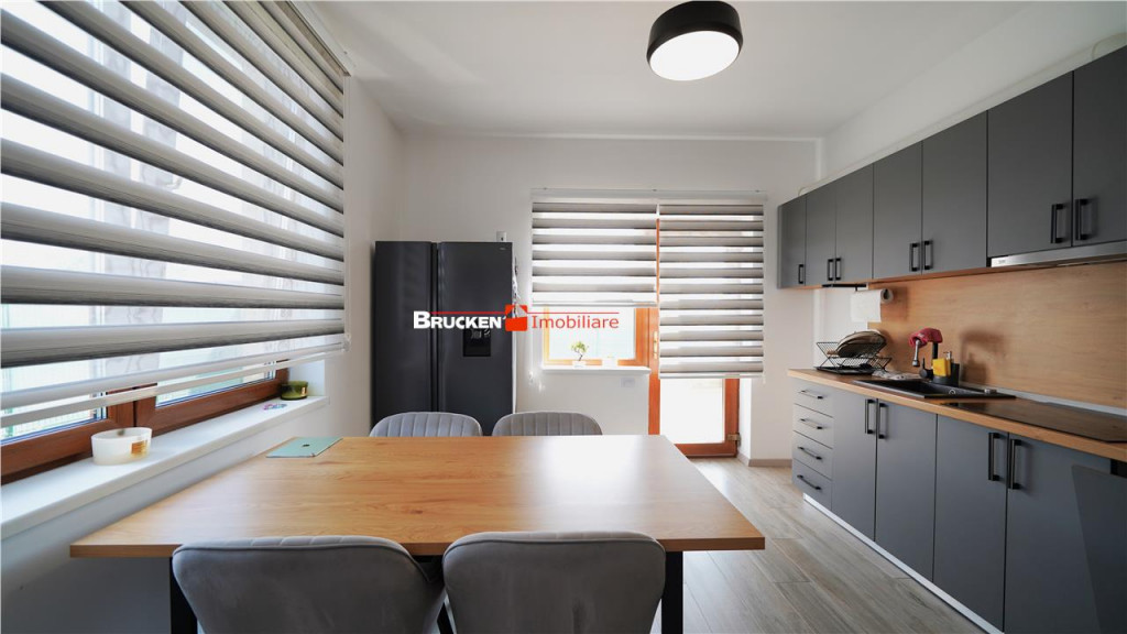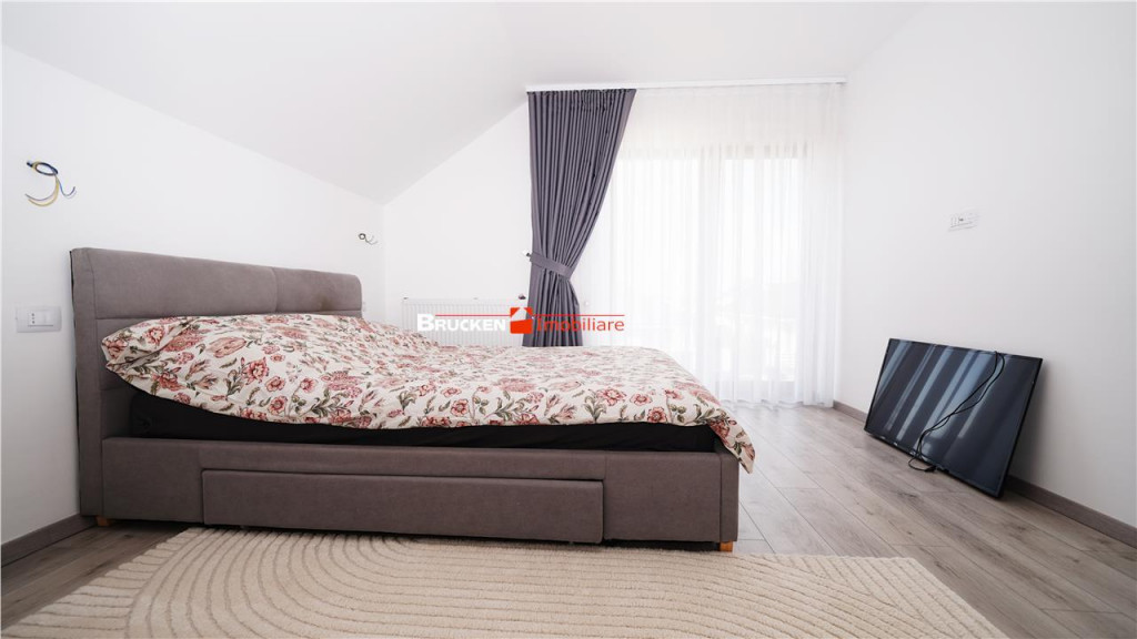 Aceasta resedinta P M imbina armonios confortul cu rafinamentul, fiind situata pe un teren de 440 mp, intr-o zona in plina dezvoltare, cu toate utilitatile deja trase, inclusiv gaz. Proprietatea beneficiaza de un sistem fotovoltaic de 5 kW, asigurand eficienta energetica si costuri reduse, precum si de un sistem video de supraveghere, pentru siguranta si liniste deplina. La parter, spatiile se deschid catre un living spectaculos cu tavan inalt, care ofera senzatia de lumina si amplitudine, completat de bucatarie, birou, baie cu dus, terasa si garaj integrat. Mansarda inalta gazduieste trei dormitoare, dressing si o baie spatioasa si luminoasa, prevazuta cu cada. Confortul este asigurat prin incalzirea in pardoseala la parter si calorifere la etaj, iar curtea amenajata include doua zone de terasa: una intima in spatele casei si o a doua in fata, completata de vegetatie. Proprietatea se vinde complet mobilata si utilata modern, fiind pregatita sa devina caminul perfect al unei familii care cauta spatiu, stil si confort, intr-o locuinta eleganta si sigura.