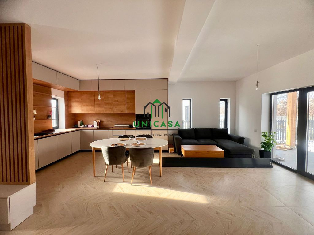 Vă propunem spre vânzare o casă modernă situată în cartierul rezidențial North Residence – Bujoreni (Olteni), într-o zonă liniștită, formată exclusiv din locuințe noi, cu vecini tineri. Imobilul este construit pe un teren de 400 mp, curte libera 297, având o suprafață utilă interioară de 85 mp, compartimentată eficient astfel : 2 dormitoare Living spațios cu bucătărie open space 2 băi Locuința beneficiază de finisaje și dotări de calitate, fiind complet mobilată și utilată, exact ca în fotografii. ✔ Încălzire în pardoseală ✔ Centrală termică proprie pe gaz ✔ Izolație exterioară ✔ Acoperiș izolat cu fibră de lemn de 20 cm – material natural, cu eficiență termică ridicată ✔ Tavan izolat suplimentar cu 10 cm vată minerală bazaltica Curtea este pregătită pentru amenajare cu gazon, fiind curățată complet de rădăcini și vegetație. Proprietatea dispune de 2 locuri de parcare în fața casei. Strada este privată și asfaltată, oferind confort și siguranță. Această locuință reprezintă alegerea ideală pentru persoanele care își doresc un cămin modern, eficient energetic și poziționat într-o zonă rezidențială în plină dezvoltare, la doar câteva minute de oraș. Pentru detalii si vizionari; 0740644414 Monica Olescu.