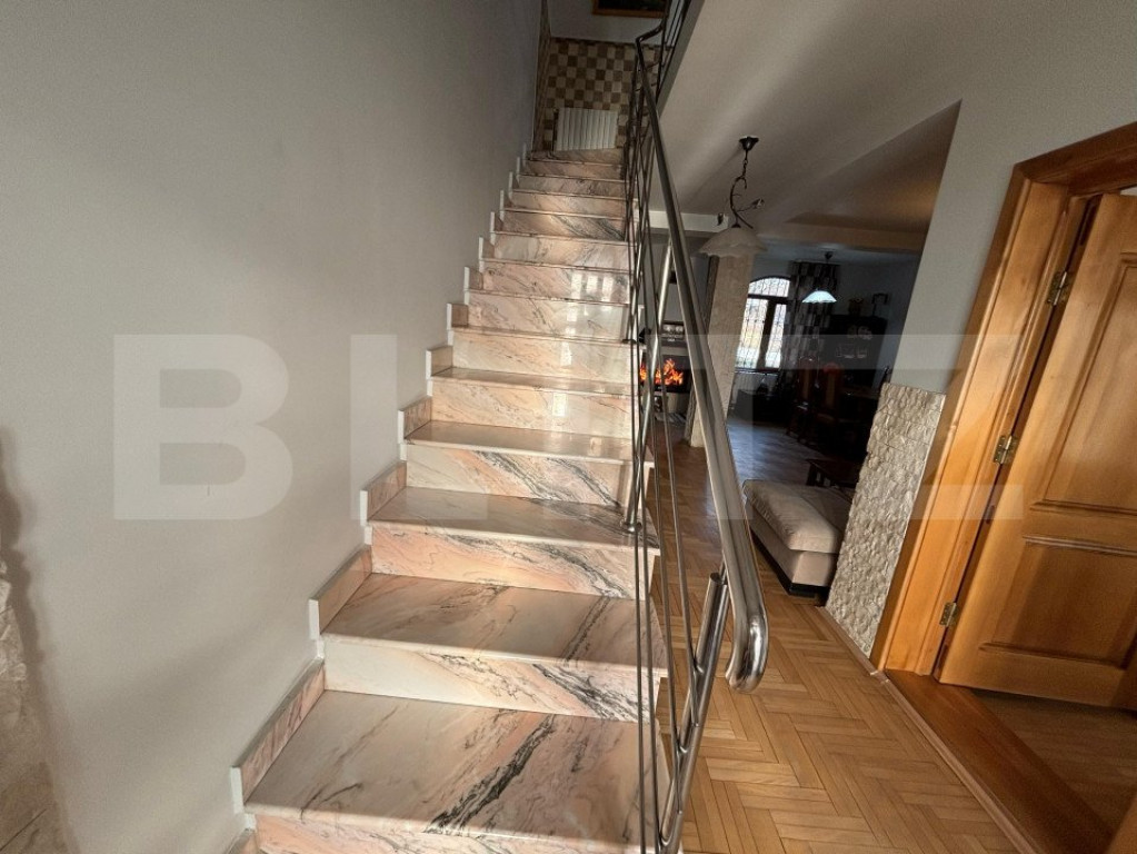 Scară monumentală din marmură, un detaliu sofisticat care subliniază rafinamentul acestei locuințe