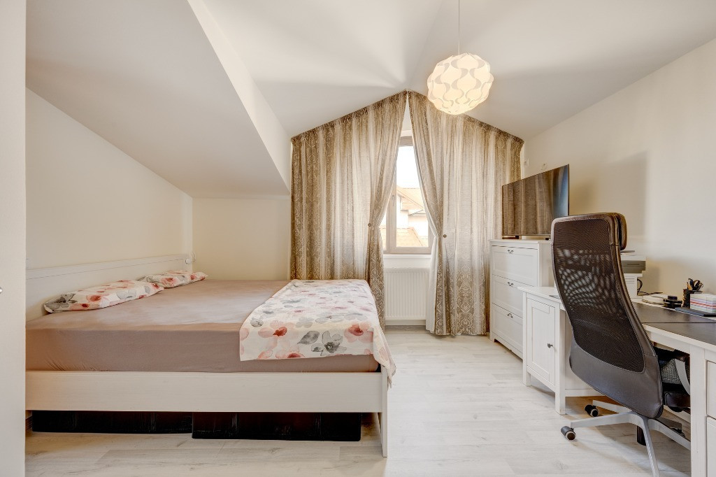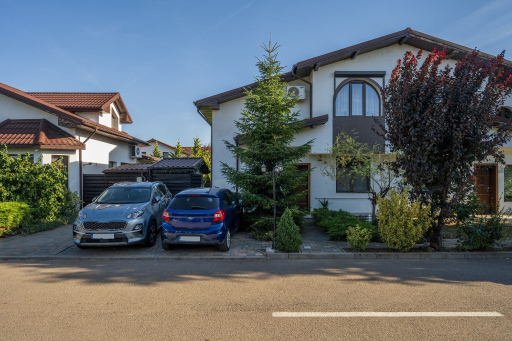 Locuință contemporană într-un complex rezidențial privat, cu acces securizat, spații verzi și locuri de joacă pentru copii. Această casă este alegerea ideală pentru cei care caută confort, siguranță și un stil de viață modern, la doar câteva minute de Paradisul Verde și de zona comercială Corbeanca. Proprietatea este complet renovată și pregătită pentru mutare imediată. Detalii generale Suprafață utilă: 102 mp utili (fără terase și scări) Teren: 250 mp Locuri de parcare: 2 Compartimentarea, practică și fluidă, cuprinde: 4 camere : living 35 mp si 3 dormitoare de 15 mp, 14 mp, 11 mp Bucătărie separata si închisă (10,2 mp) 2 băi (5,3 mp si 5 mp) Terasă termoizolată si finisata cu lambriuri de lemn (24 mp) Locuri de joaca si parcuri pentru copii private Dotări & Beneficii Panouri fotovoltaice 4 kW (contract prosumator) Obloane metalice exterioare la toate suprafețele vitrate inclusiv plase insecte, actionate manual sau electric Aparate de aer conditionat pe fiecare nivel Grădină amenajată cu rulouri gazon + vegetație adultă si sistem de irigatie Casă de grădină dublu izolată (6 mp) Granit pe terasă și trotuare Construcție solida, de calitate (caramida Porotherm; stalpii, grinzile, centurile si placile din beton armat; compartimentare caramida; usi interioare si exterioare Door System; centrala termica Saunier Duval) Peretele comun intre duplexuri este dublu, cu izolatie fonica excelenta Terasă termoizolată cu fundație solidă Avantaje suplimentare Casă renovată complet (inclusiv parchet nou) Se vinde parțial mobilată și utilată, totul este pregatit pentru mutare rapida Toate utilitățile disponibile: gaz, apă, canalizare, electricitate, internet de mare viteză Comunitate liniștită, acces securizat, strazi asfaltate cu retea de apa si canalizare, spații verzi și locuri de joacă special amenajate pentru copii in interiorul complexului cu acces exclusiv Vino să o descoperi! Este locuința ideală pentru cei care caută confort, siguranță și un stil de viață modern.