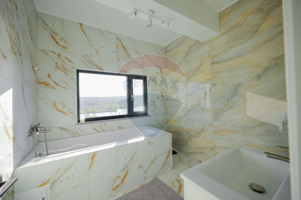 Vă propunem spre vânzare o casă în stil mediteranean cu priveliște superbă la lac, situată în Paleu, pe strada Renașterii, într-o zonă liniștită și ușor accesibilă din Oradea. Proprietatea este amplasată pe un teren de 504 mp, iar casa are o suprafață construită desfășurată de 152 mp, fiind ideală pentru o familie care își dorește confort, liniște și apropierea de natură. Construită în stil mediteranean, locuința se remarcă prin luminozitatea spațiilor și prin armonia dintre interior și exterior. La parter se află un living cu bucătărie open space, o cămară de depozitare, un dormitor cu dressing și o baie cu duș. Din living se poate ieși pe o terasă de 18 mp, perfectă pentru relaxare și seri petrecute cu vedere spre lac. Etajul este alcătuit din două dormitoare, fiecare cu dressing propriu, o baie cu cadă și o terasă de 24 mp, de unde se poate admira o priveliște deosebită asupra lacului și a împrejurimilor. Casa este amplasată într-o zonă liniștită, aproape de oraș, dar suficient de retrasă pentru a oferi intimitate și aer curat. Curtea este complet amenajată, cu gazon și sistem de irigație automat, pregătită pentru a fi folosită imediat. De asemenea, există o placă de beton destinată amenajării unei filigorii sau a unui loc de grătar, ideal pentru relaxare în aer liber și momente petrecute alături de familie și prieteni. Construcția este nouă, realizată cu materiale de calitate, gândită pentru confort, funcționalitate și un stil de viață relaxat, inspirat de arhitectura mediteraneană. Este alegerea potrivită pentru cei care își doresc o locuință luminoasă, confortabilă, cu vedere la lac și acces rapid către toate facilitățile oferite de oraș. Pentru o vizionare sau pentru mai multe informații, vă rog să mă contactați.