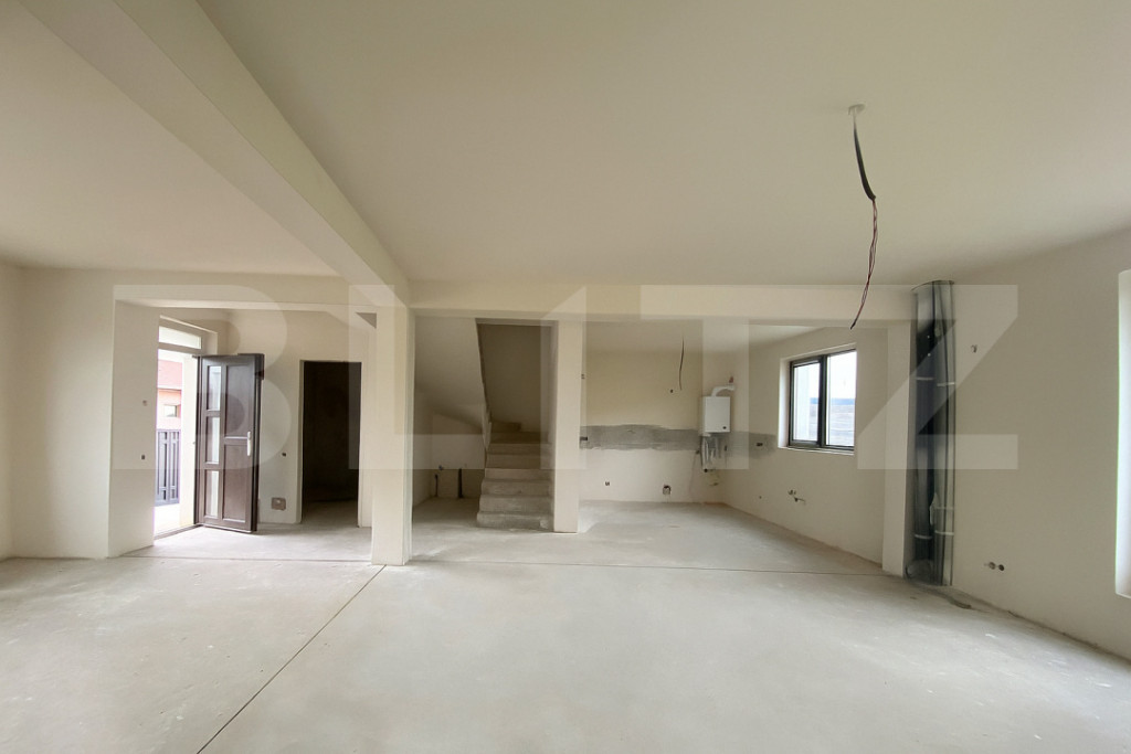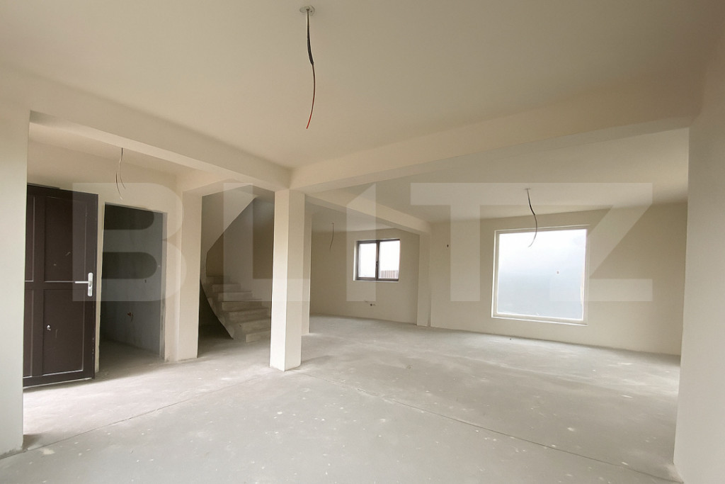 Casă semifinisată într-o zonă superbă, la intrare în Chinteni – priveliște, liniște și acces rapid către Cluj Vă prezentăm o casă modernă, aflata într-o zonă deosebit de frumoasă, cu priveliște și acces excelent: la doar cateva sute de metri de stația de autobuz spre Cluj și de magazinul Profi. Pretul are TVA de 21% inclus! Caracteristici principale: • 120 mp utili • 317 mp teren • 2 terase + 1 balcon însumând 25 mp • Compartimentare practică, ideală pentru familie Compartimentare: -Parter: living luminos, bucătărie, baie, hol -Etaj: 3 dormitoare, 2 băi, hol, balcon Se predă finisată exterior & semifinisată interior: • Exterior complet finalizat conform pozelor • Instalații electrice și sanitare trase pe poziții • Încălzire în pardoseală la parter și etaj • Șapă turnată • Centrală montată Viessmann • Tavan etaj – izolație + gips-carton Materiale și dotări premium: • Cărămidă Cemacon 25 cm • Polistiren exterior 15 cm + tencuială siliconică • Acoperiș cu țiglă Terran • Geamuri Salamander Green Evolution 76, tripan • Izolație pod 20 cm vată minerală + folie aluminiu anticondens • Hidroizolație la fundație • Sticlă securizată la balcon • Distribuitor de căldură pe ambele niveluri • Drenaj pentru ape pluviale • Gazon însămânțat • Poartă pregătită pentru motor automatizat O locuință construită responsabil, într-o zonă liniștită și verde, perfectă pentru o familie care își dorește confort și proximitate față de oraș. Cod ofertă / ID BLITZ: P158274 Id intern: P158274