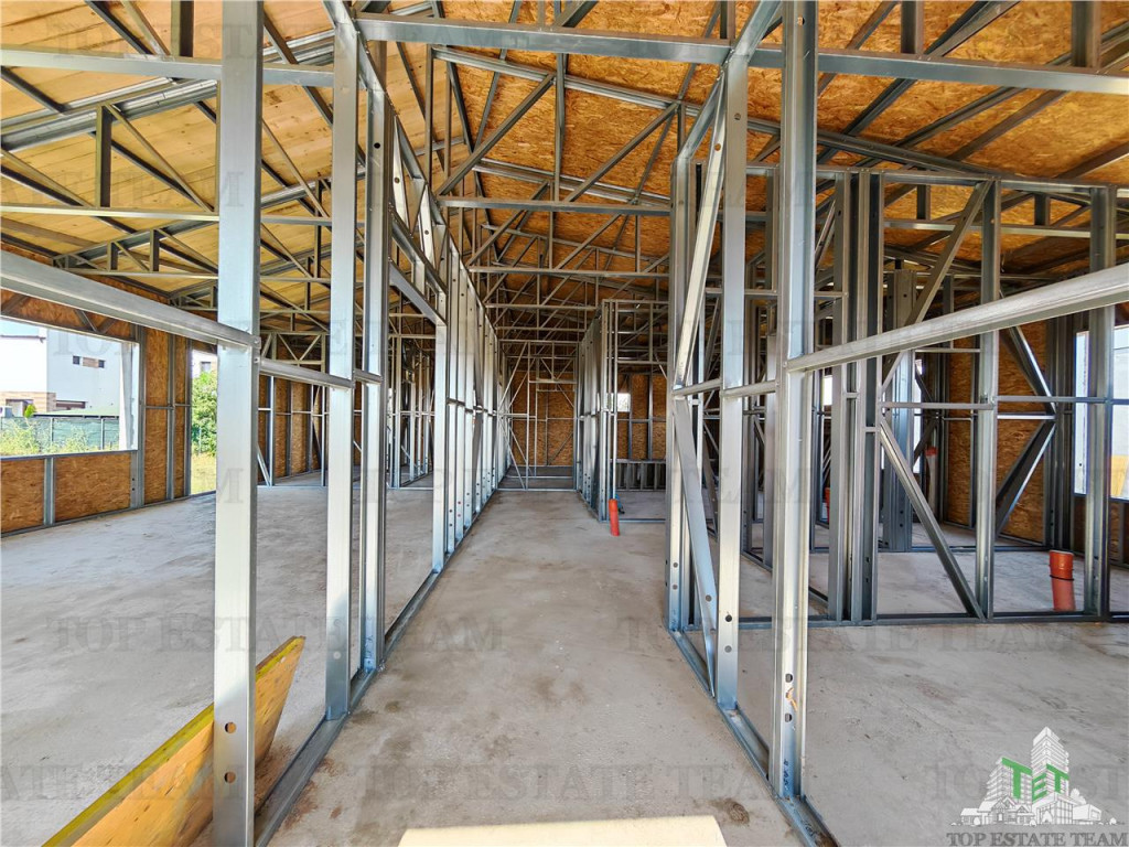 Excelenta prin experienta! Situata intr-o zona aerisita, la doar cateva minute de Laguna Verde si Mega Image, aceasta locuinta ofera un echilibru perfect intre design modern, eficienta energetica si calitate in executie. Detalii tehnice si constructie: Suprafata utila 170 mp Suprafata construita: 200 mp Teren: 670 mp Structura integral metalica, realizata profesional ndash; durabilitate superioara, precizie milimetrica si rezistenta seismica excelenta Izolatie cu spuma poliuretanica pe acoperis si pereti pentru eficienta termica maxima si confort constant tot timpul anului Incalzire in pardoseala Pereti exteriori placati cu OSB, vata bazaltica si tencuiala decorativa Tamplarie PVC tripan Spatii vitrate mari pentru lumina naturala si ventilatie optima Locuintele din complex sunt rezultatul unei inginerii de precizie, fiind realizate pe structura metalica usoara (1GS). Aceasta tehnologie ofera avantaje net superioare constructiilor clasice: Precizie Milimetrica: Utilizarea tehnologiei de ultima generatie (FRAMECAD) elimina erorile umane, asigurand pereti perfect drepti si imbinari ideale. Siguranta Seismica: Structura din profile tip C, zincate si asamblate mecanic cu suruburi, ofera o elasticitate si o rezistenta superioara la cutremure fata de structurile rigide. Eficienta Termica Avansata: Peretii exteriori beneficiaza de un pachet de izolatie de 20 cm (15 cm EPS-80 la exterior si 5 cm vata minerala de mare densitate la interior), asigurnd un confort termic optim si facturi reduse la energie. Protectie Acustica si Hidro: Acoperisul tip sarpanta, realizat din tabla profilata la rece si izolat cu vata minerala, este proiectat pentru durabilitate maxima si izolare fonica ridicata. Infrastructura Moderna: Fiecare proprietate este pregatita pentru conectare individuala la utilitati (apa, canal, electricitate) si dispune de un drum de acces generos, cu o latime de 9 m Compartimentare: Living open-space cu bucatarie si zona de dining 3 dormitoare spatioase 2 bai Spatiu tehnic / depozitare Constructie solida, Tehnologie moderna pentru eficienta energetica si costuri reduse de intretinere Zona linistita, cu acces rapid catre Aeroport, Pipera, DN1 si A3 Posibilitate de personalizare a finisajelor interioare O locuinta construita corect, pentru oameni care pun pret pe calitate si durabilitate, nu doar pe aparente. Pret: 231.500 Euro TVA ID intern: TET0021374